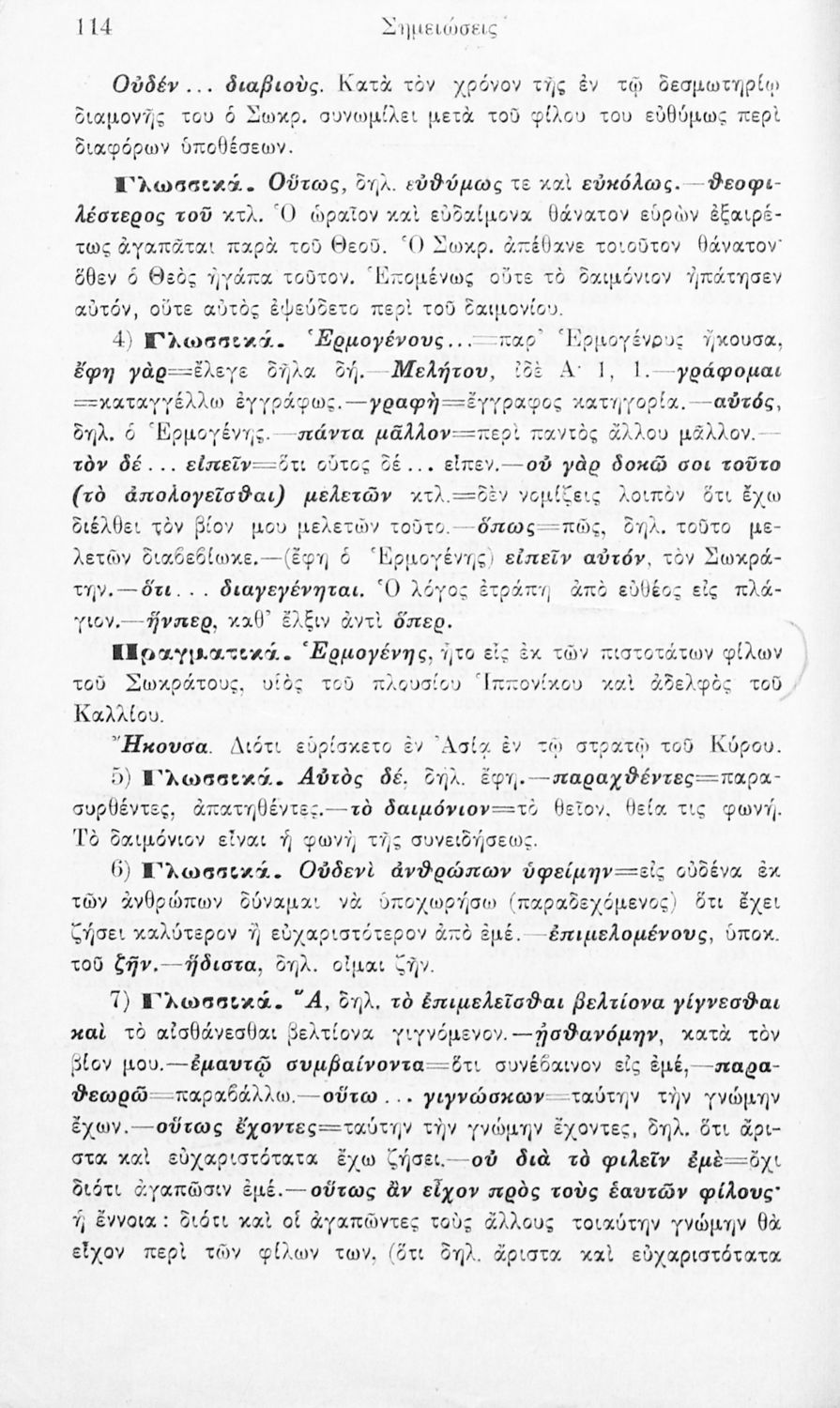 Μαθητικό βοήθημα Β΄ Τετραταξίου Γυμνασίου που περιλαμβάνει την μετάφραση αποσπασμάτων από το έργο του Ξενοφώντα Απομνημονεύματα και πραγματολογικά, γραμματικά και λεξιλογικά σχόλια.