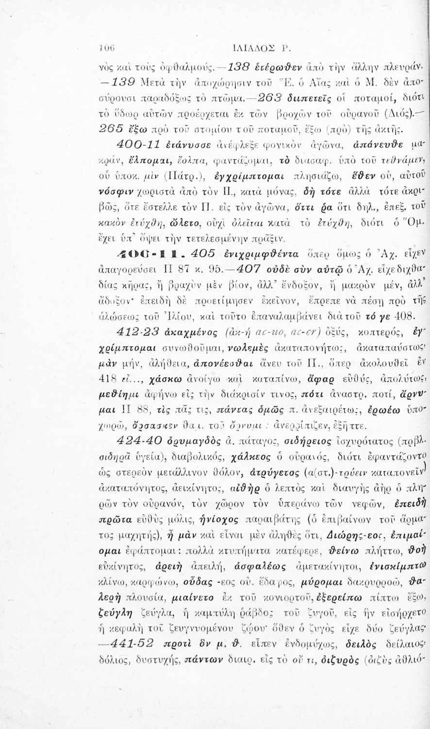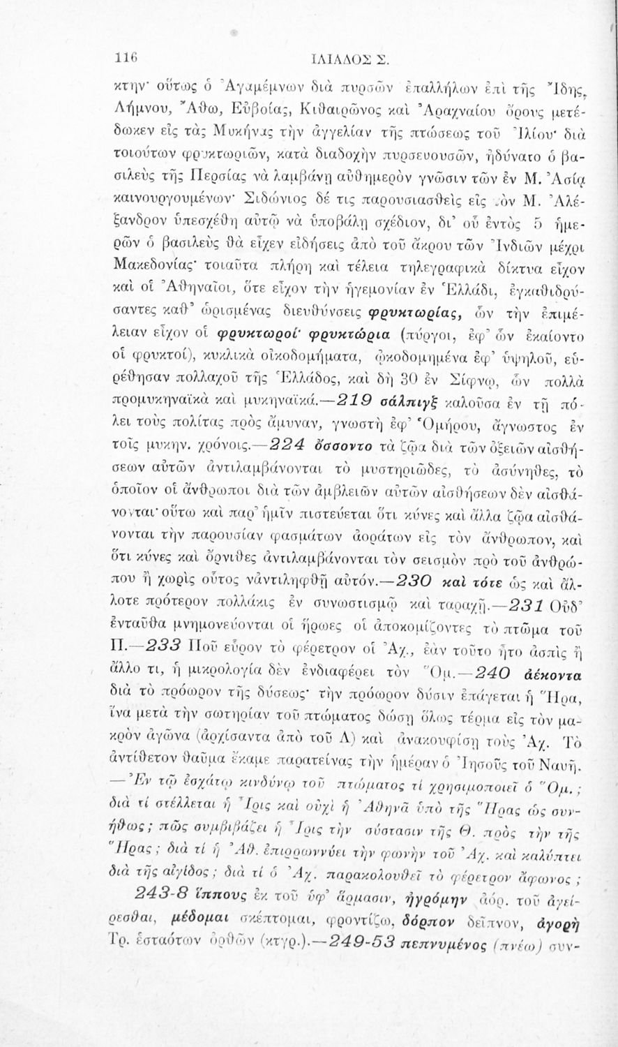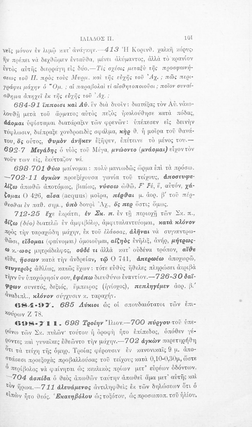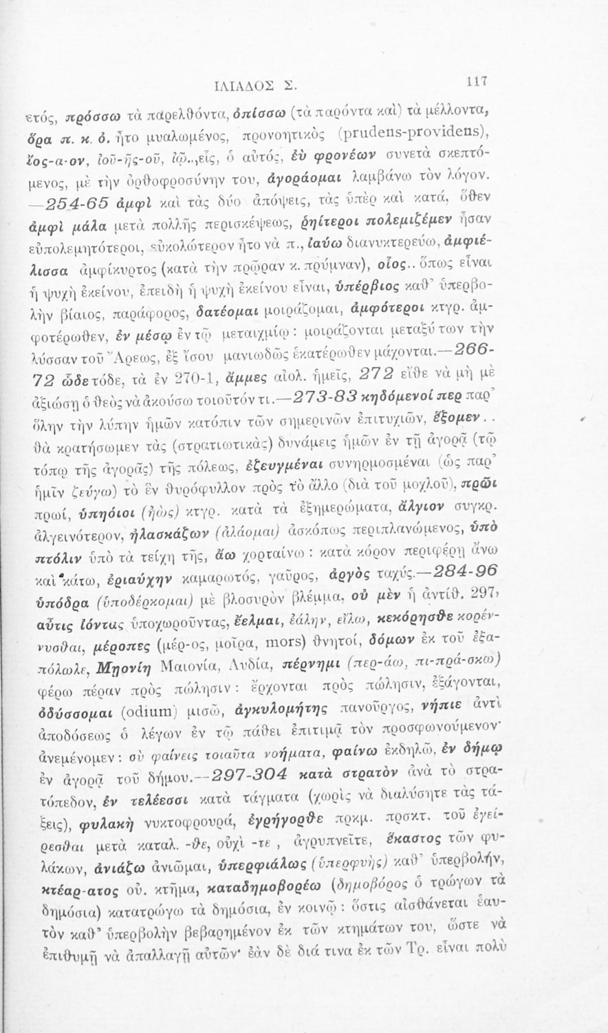 Μαθητικό βοήθημα του Ελληνικού Σχολείου, των Παρθεναγωγείων και του Γυμνασίου για το μάθημα των Αρχαίων Ελληνικών. Περιέχει τις ραψωδίες Ο, Π, Ρ, Σ, Τ, Χ, ψ, Ω από το πρωτότυπο με σχόλια και ερμηνευτικές ...