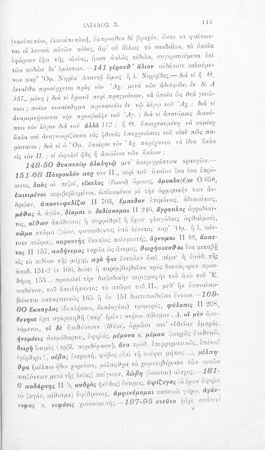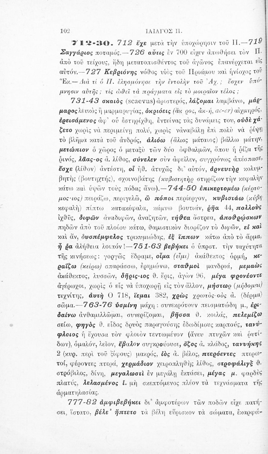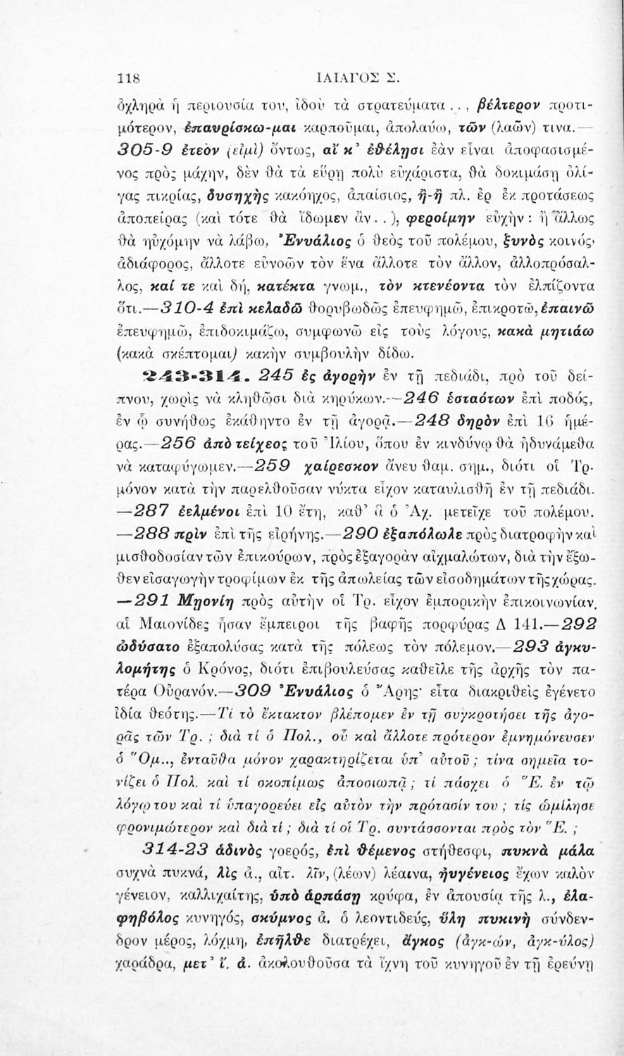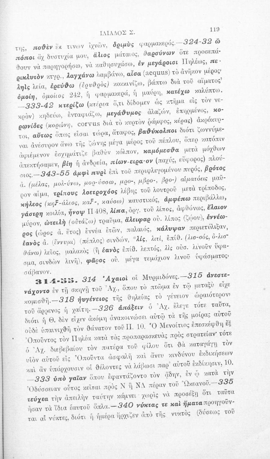 Μαθητικό βοήθημα του Ελληνικού Σχολείου, των Παρθεναγωγείων και του Γυμνασίου για το μάθημα των Αρχαίων Ελληνικών. Περιέχει τις ραψωδίες Ο, Π, Ρ, Σ, Τ, Χ, ψ, Ω από το πρωτότυπο με σχόλια και ερμηνευτικές ...