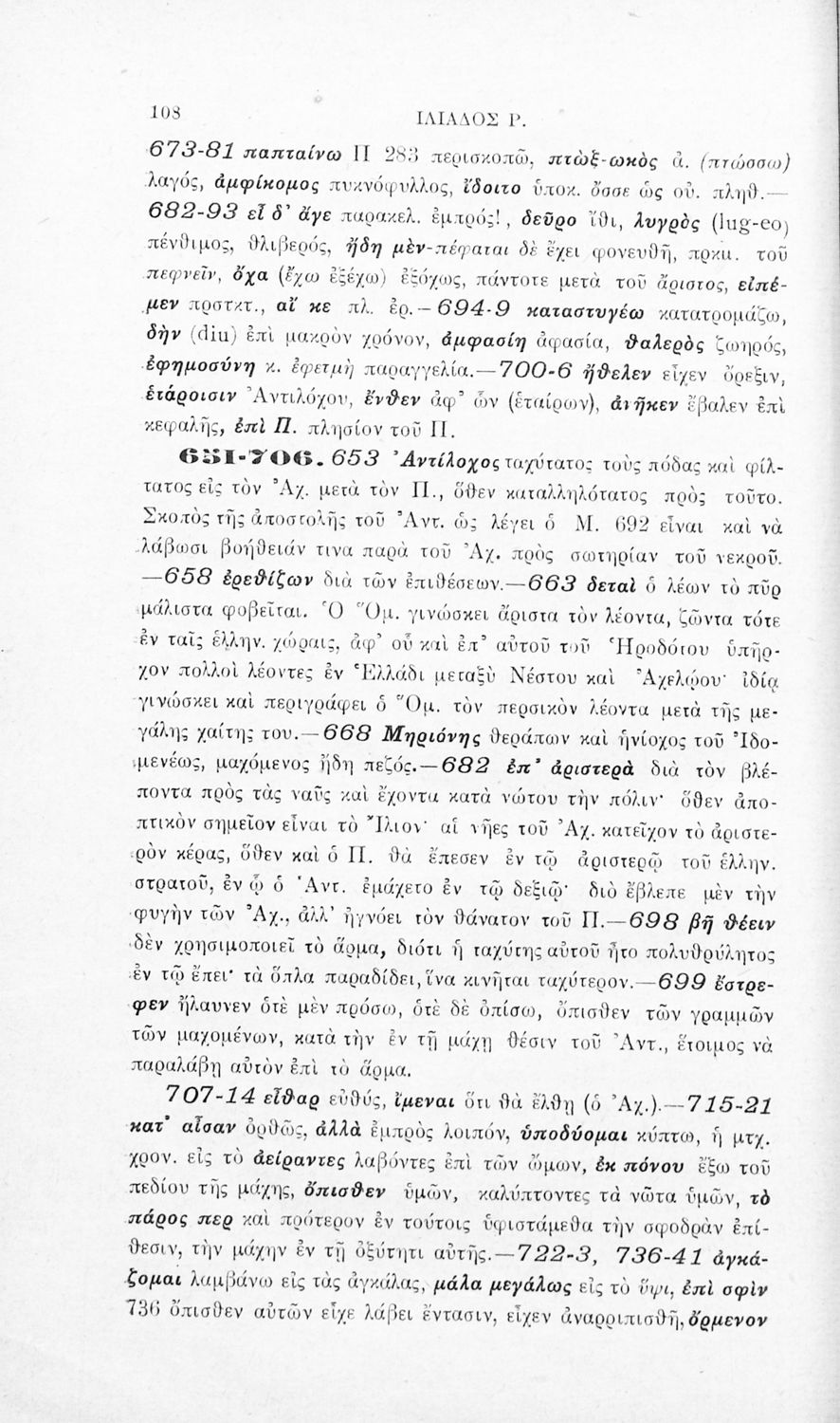 Μαθητικό βοήθημα Αρχαίων Ελληνικών που περιλαμβάνει τις ραψωδίες Ο, Π, Ρ, Σ, Τ, Χ, Ψ, Ω από την Ιλιάδα του Ομήρου και ερμηνευτικά, γλωσσικά και πραγματολογικά σχόλια.