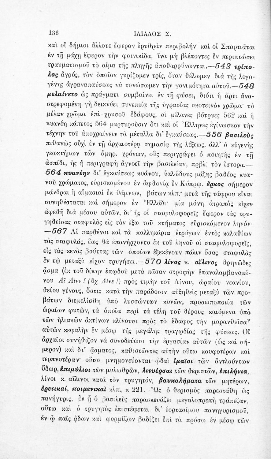 Μαθητικό βοήθημα του Ελληνικού Σχολείου, των Παρθεναγωγείων και του Γυμνασίου για το μάθημα των Αρχαίων Ελληνικών. Περιέχει τις ραψωδίες Ο, Π, Ρ, Σ, Τ, Χ, ψ, Ω από το πρωτότυπο με σχόλια και ερμηνευτικές ...