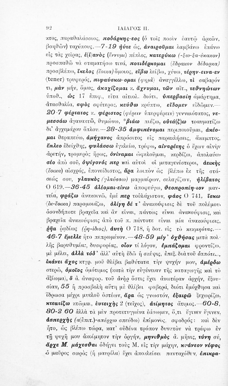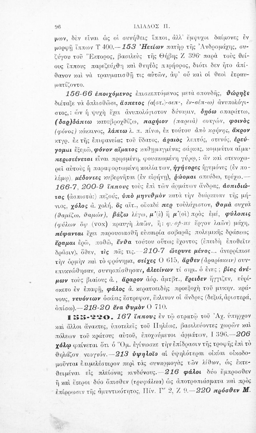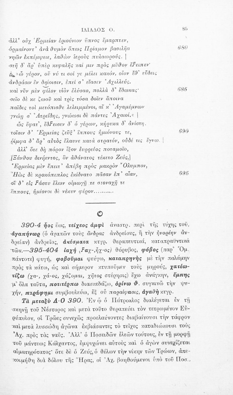 Μαθητικό βοήθημα του Ελληνικού Σχολείου, των Παρθεναγωγείων και του Γυμνασίου για το μάθημα των Αρχαίων Ελληνικών. Περιέχει τις ραψωδίες Ο, Π, Ρ, Σ, Τ, Χ, ψ, Ω από το πρωτότυπο με σχόλια και ερμηνευτικές ...