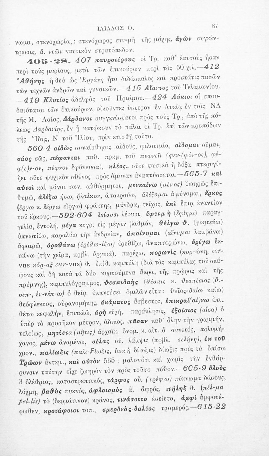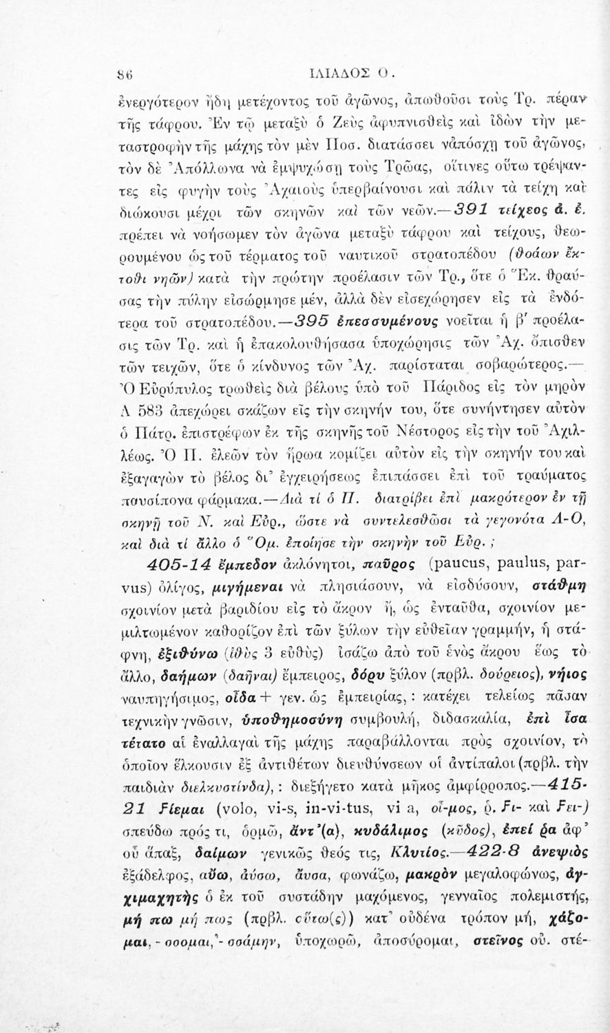Μαθητικό βοήθημα Αρχαίων Ελληνικών που περιλαμβάνει τις ραψωδίες Ο, Π, Ρ, Σ, Τ, Χ, Ψ, Ω από την Ιλιάδα του Ομήρου και ερμηνευτικά, γλωσσικά και πραγματολογικά σχόλια.