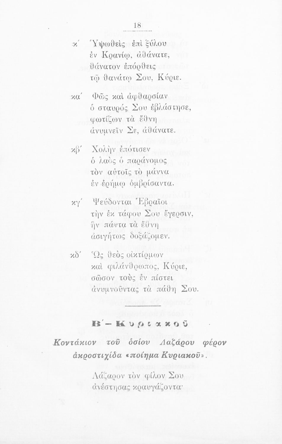 LDR 01029 2200205 4500 035 ## _a02-02008 040 ## _aΕλληνικό Λογοτεχνικό και Ιστορικό Αρχείο 041 ## _ael 100 ## _aΕμμανουήλ Γ. Παντελάκης 110 ## _a1920 ΠΑΝ 245 0# _aΚοντάκια και κανόνες της εκκλησιαστικής ποιήσεως προς χρήσιν των μαθητών της Γ΄ τάξεως των Γυμνασίων 250 ## _a2η Έκδοση 260 ## _aΑθήνα _bΓεώργιος Χ. Κορνάρος _c1920 300 ## _a48 520 ## _aΣχολικό εγχειρίδιο Θρησκευτικών Γ΄ Γυμνασίου που περιλαμβάνει εισαγωγή στην εκκλησιαστική ποίηση και κοντάκια. 521 ## _aΓ' Γυμνασίου 522 ## _aΕλλάδα 546 ## _aΚαθαρεύουσα 563 ## _aΜαλακό Εξώφυλλο 650 #4 _aΚοντάκια _aΡωμανός ο Μελωδός