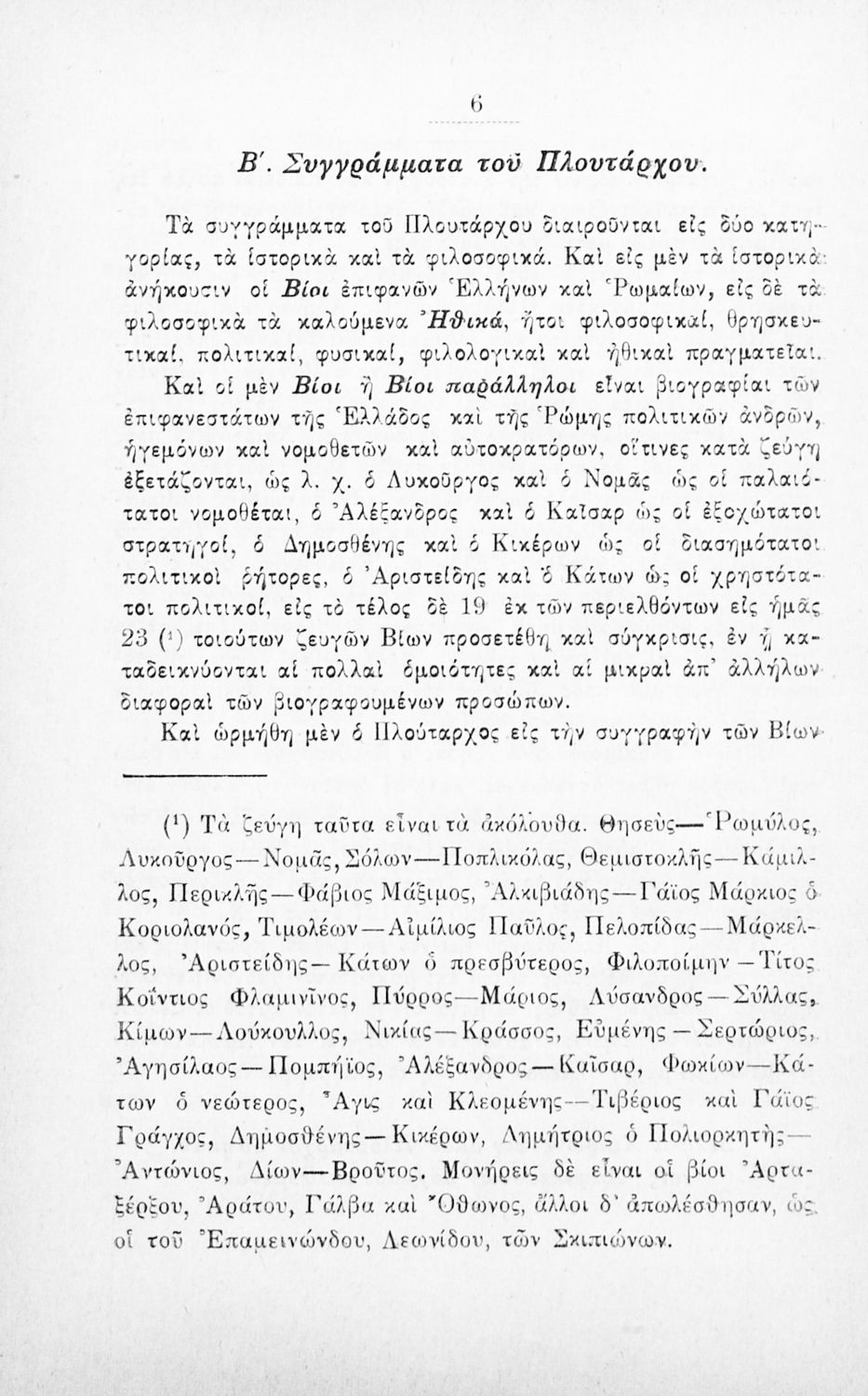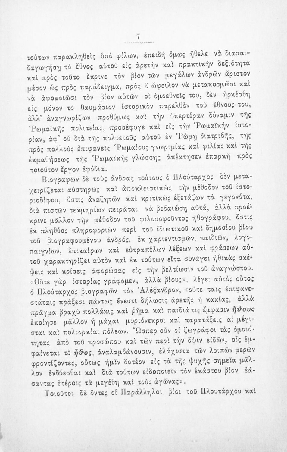 Σχολικό εγχειρίδιο Αρχαίων Ελληνικών για τις Β΄ Γυμνασίου και Γ΄ Αστικού Σχολείου που περιλαμβάνει αποσπάσματα από το έργο του Πλούταρχου Βίοι Παράλληλοι και ερμηνευτικά και πραγματολογικά σχόλια.