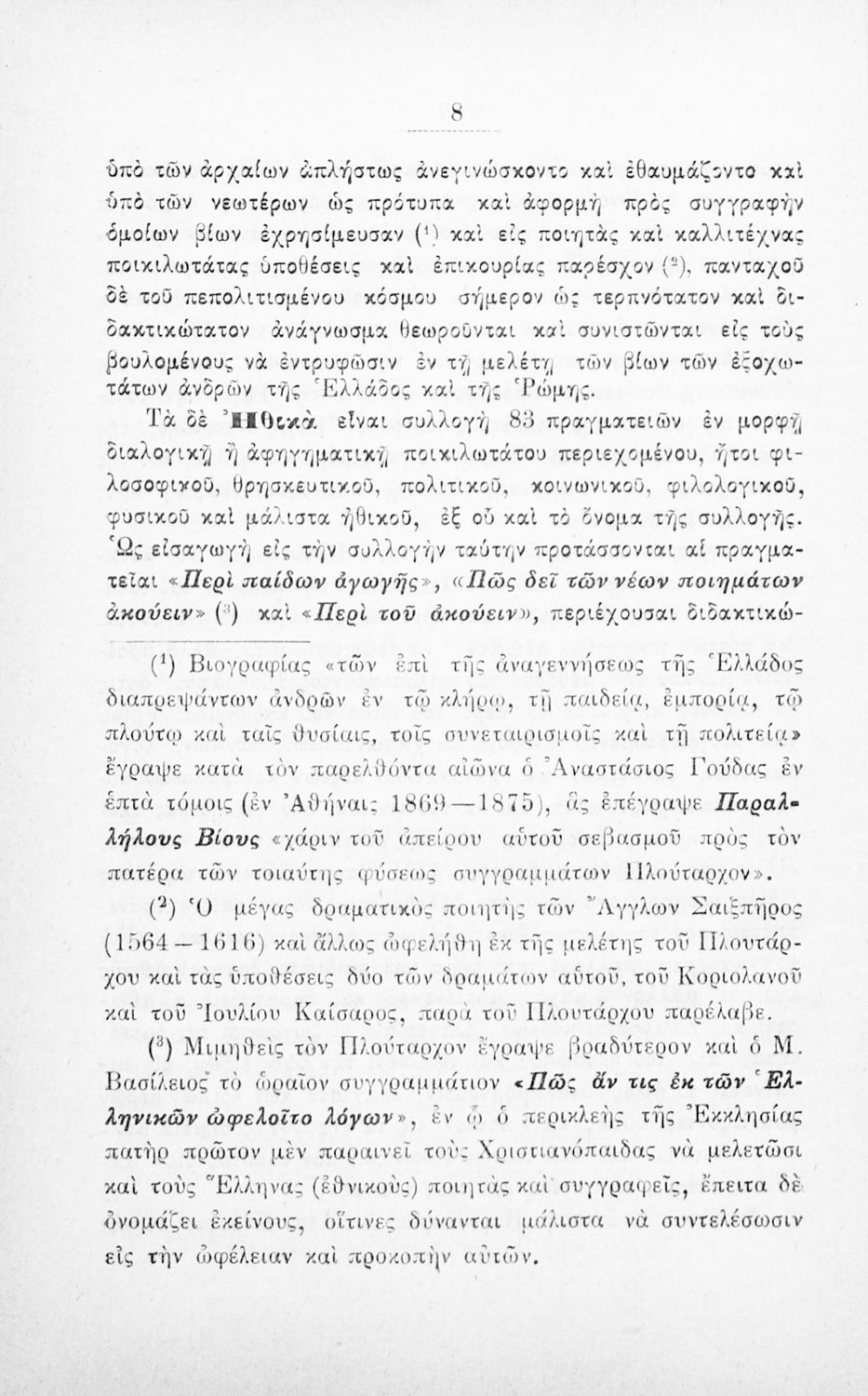 Σχολικό εγχειρίδιο Αρχαίων Ελληνικών που περιλαμβάνει το έργο του Πλούταρχου Περί παίδων αγωγής, εισαγωγή στη ζωή και το έργο του, και ερμηνευτικές σημειώσεις.
