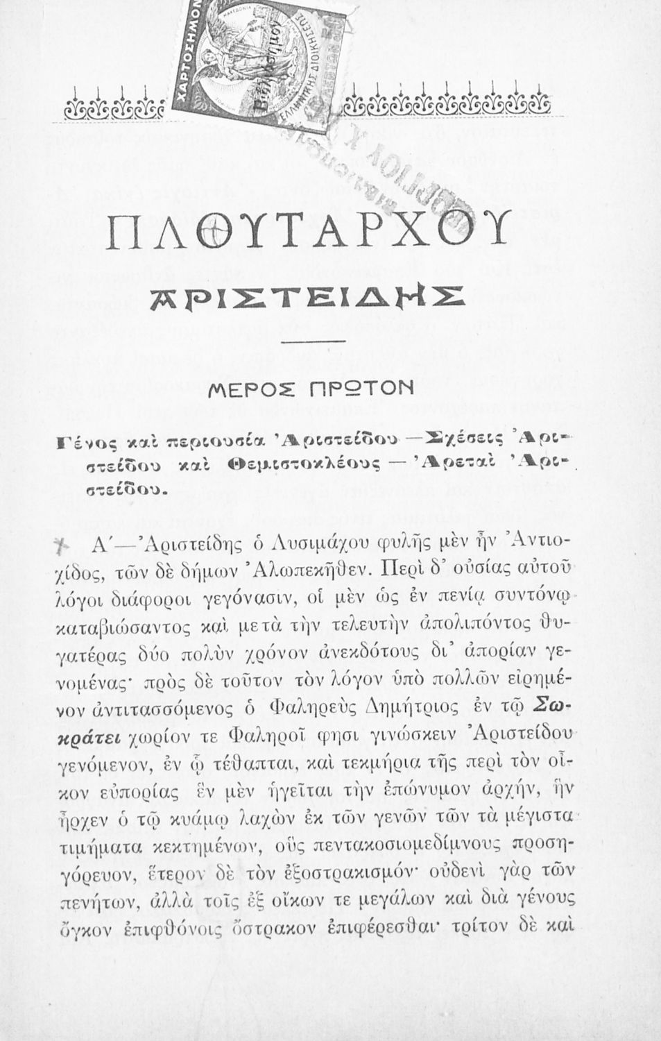 Τίτλος: Πλουτάρχου Αριστείδης μετά προλεγόμενων και σημειώσεων προς χρήσιν των μαθητευόντων