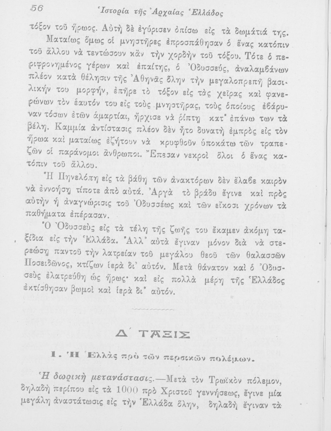 Σχολικό εγχειρίδιο Ιστορίας για τις Γ΄ και Δ΄ Δημοτικού και Παρθεναγωγείου που καλύπτει το διάστημα από τους προϊστορικούς χρόνους ως την κατάληψη της Ελλάδας από τους Ρωμαίους.