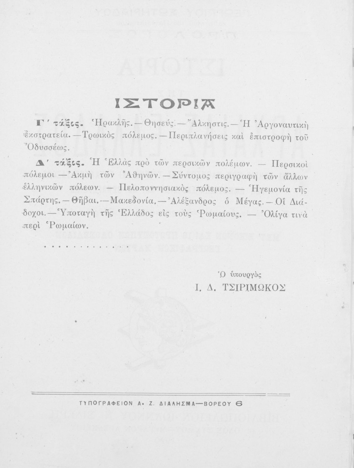 Σχολικό εγχειρίδιο Ιστορίας για τις Γ΄ και Δ΄ Δημοτικού και Παρθεναγωγείου που καλύπτει το διάστημα από τους προϊστορικούς χρόνους ως την κατάληψη της Ελλάδας από τους Ρωμαίους.
