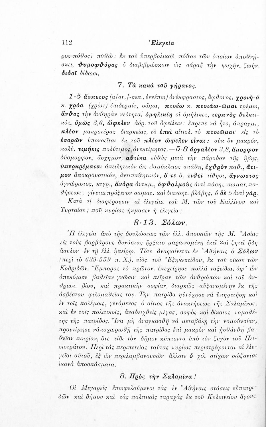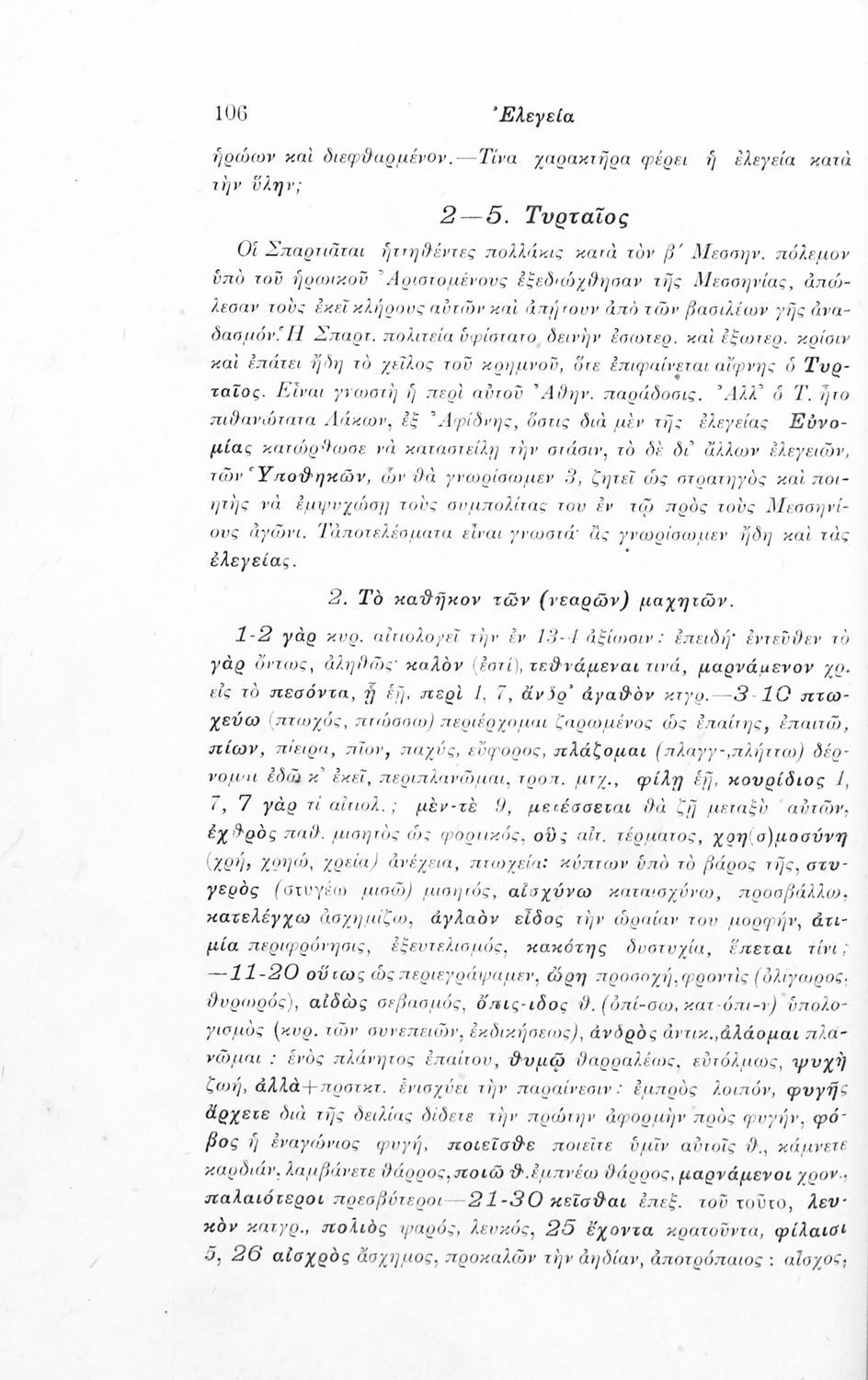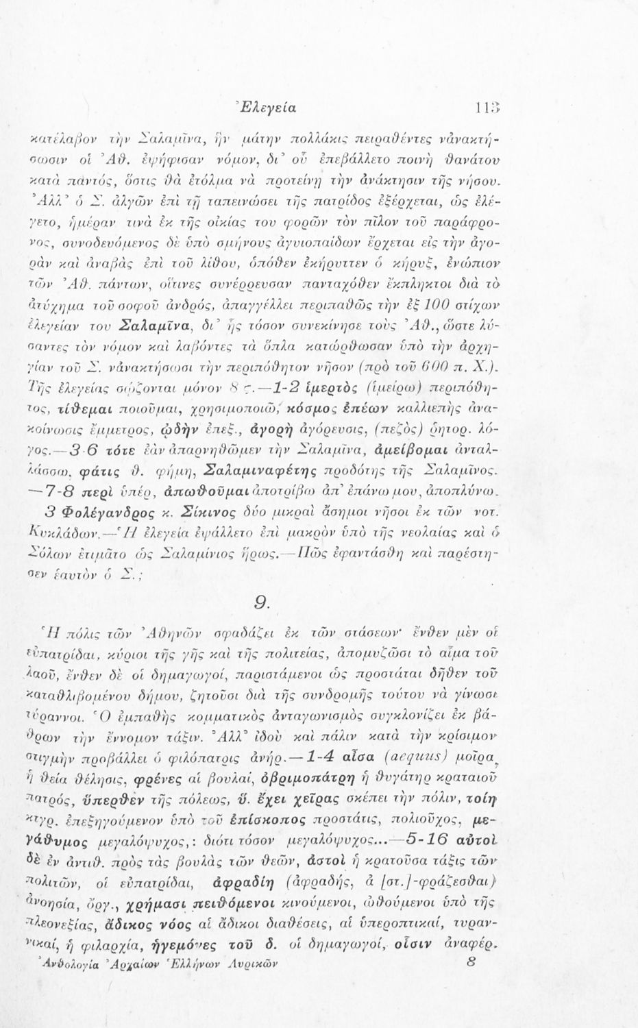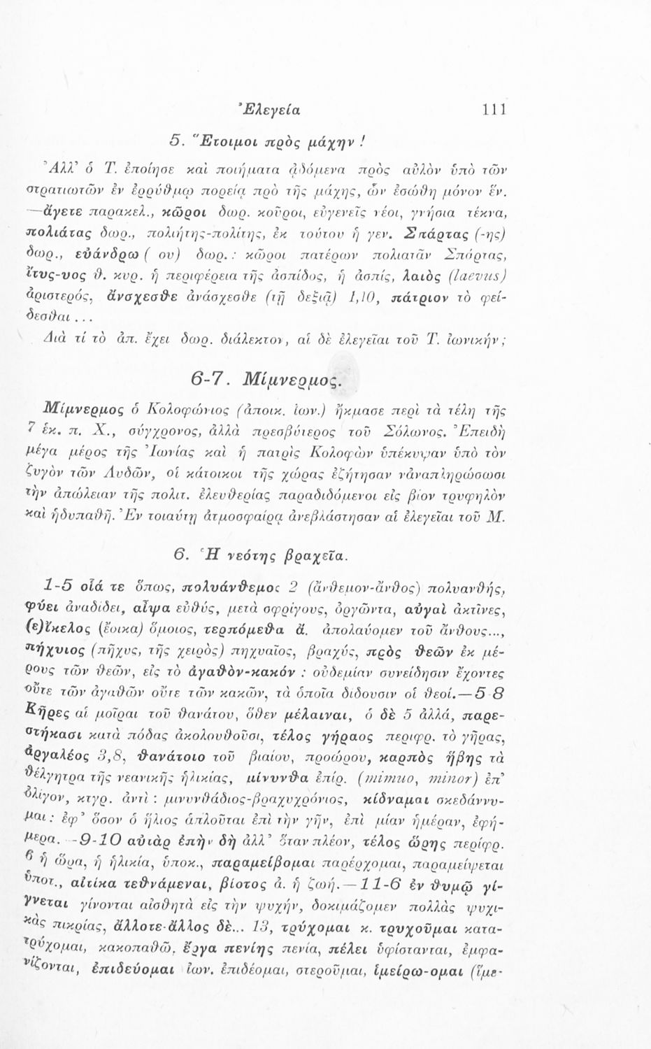 Μαθητικό βοήθημα Αρχαίων Ελληνικών που περιλαμβάνει αποσπάσματα έργων αρχαίων Ελλήνων λυρικών, πολιτικές και γνωμικές ελεγείες, ιάμβους και επιγράμματα. Περιέχει και υπόμνημα με ερμηνευτικά, πραγματολογικά, γλωσσικά και γραμματικά σχόλια.