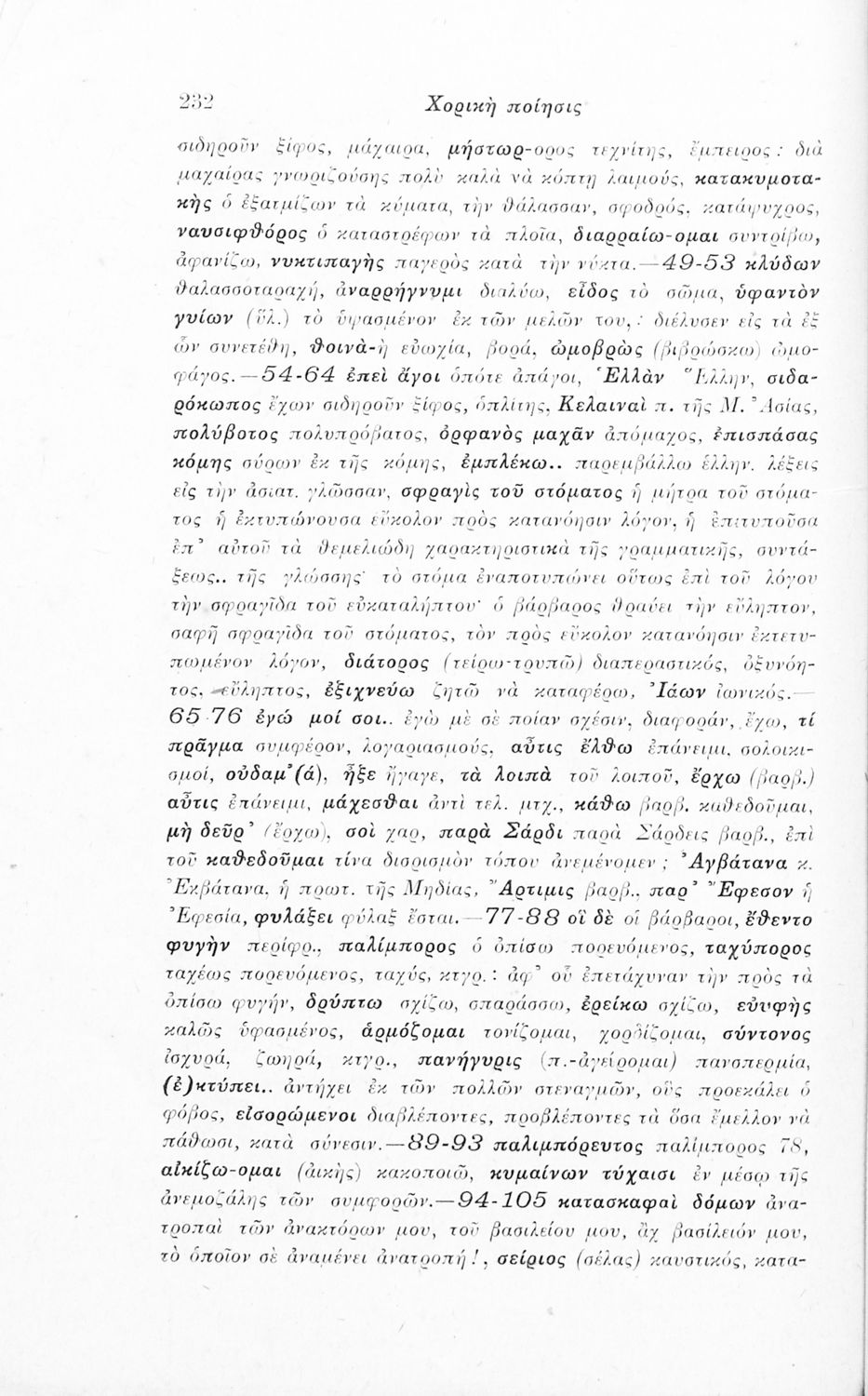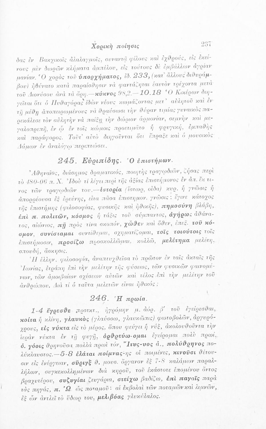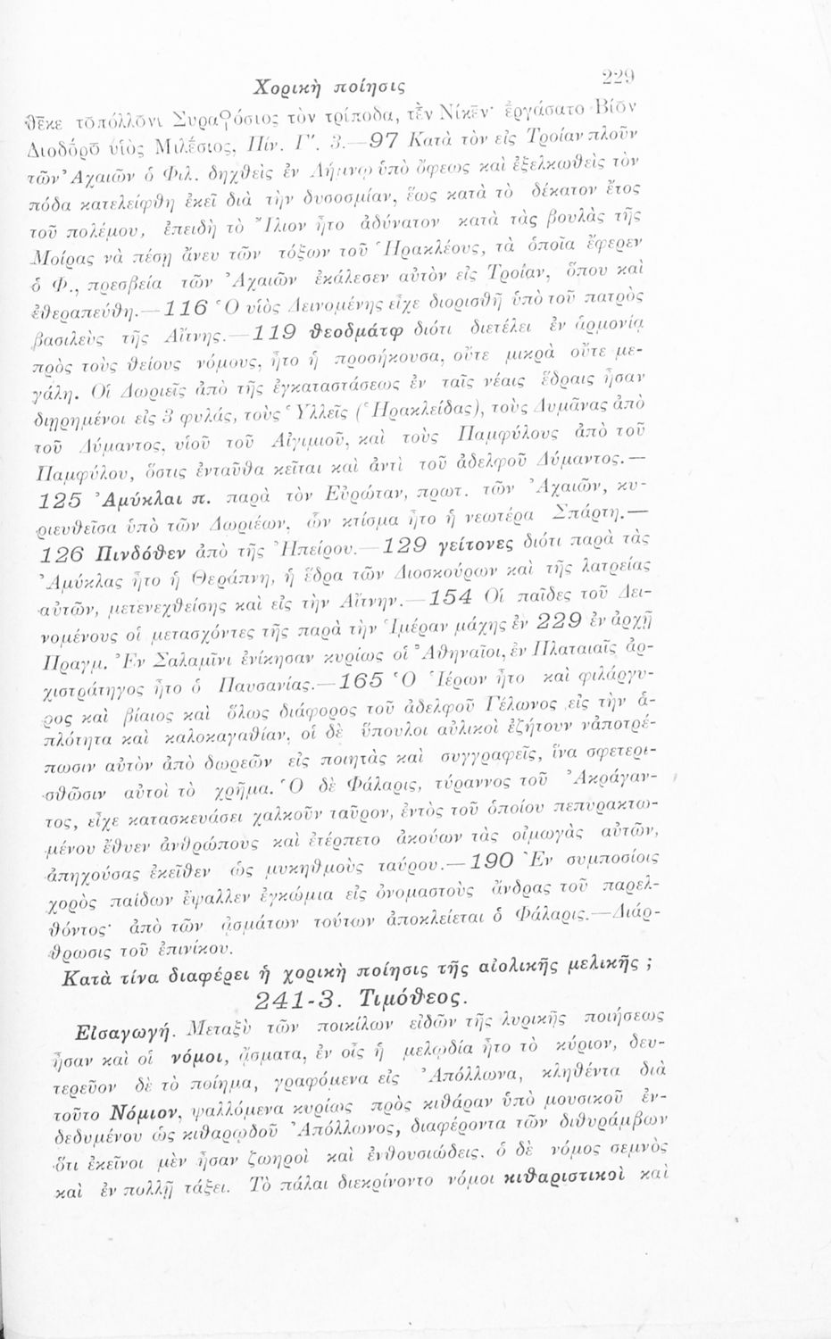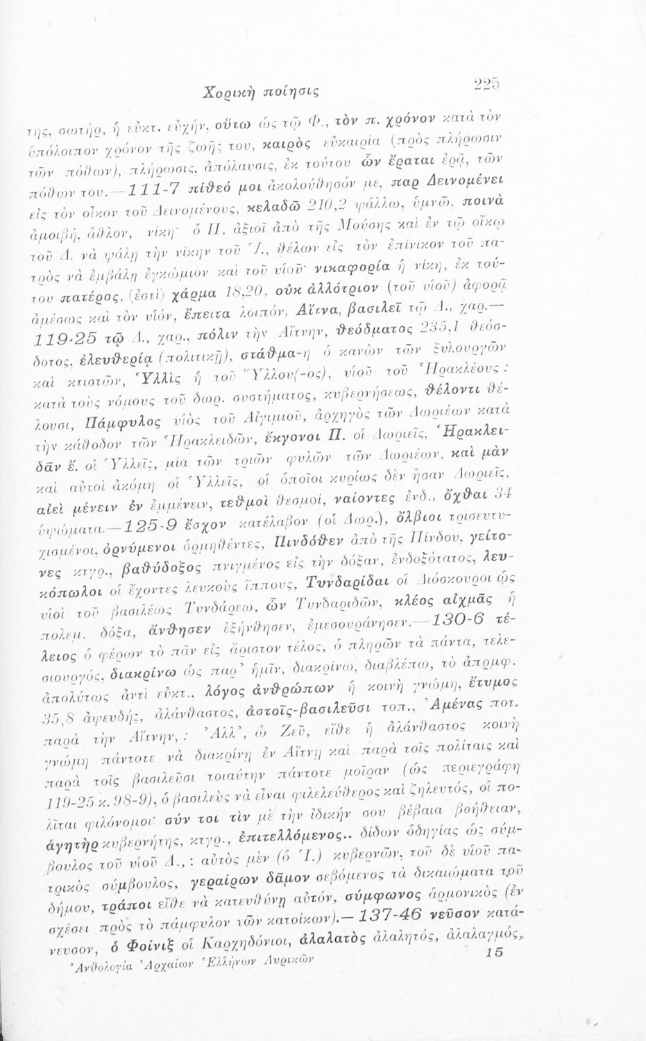 Μαθητικό βοήθημα Αρχαίων Ελληνικών που περιλαμβάνει αποσπάσματα έργων αρχαίων Ελλήνων λυρικών, πολιτικές και γνωμικές ελεγείες, ιάμβους και επιγράμματα. Περιέχει και υπόμνημα με ερμηνευτικά, πραγματολογικά, γλωσσικά και γραμματικά σχόλια.