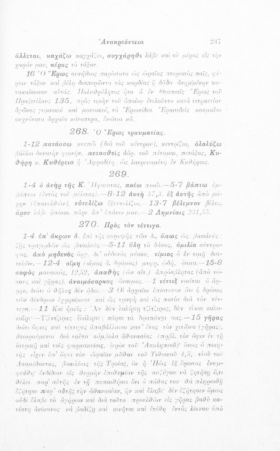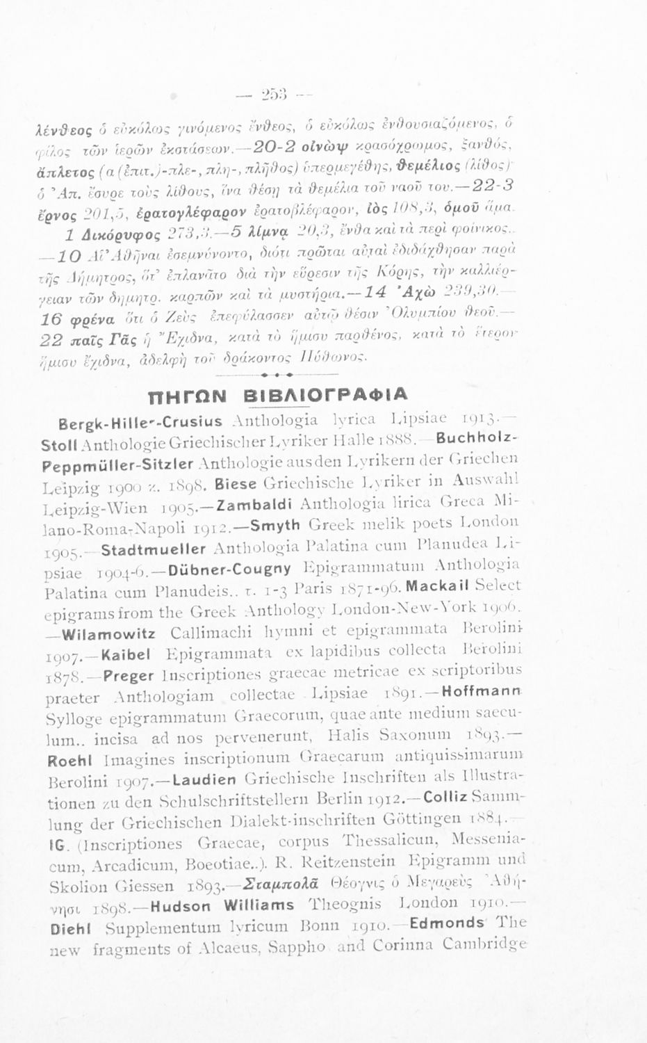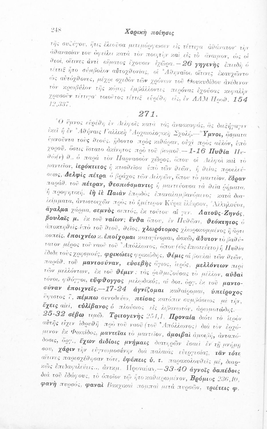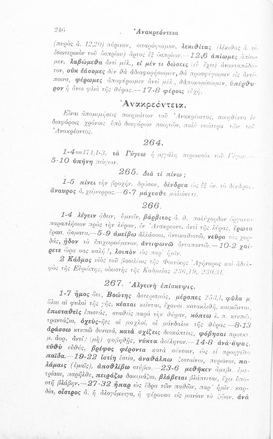 Μαθητικό βοήθημα Αρχαίων Ελληνικών που περιλαμβάνει αποσπάσματα έργων αρχαίων Ελλήνων λυρικών, πολιτικές και γνωμικές ελεγείες, ιάμβους και επιγράμματα. Περιέχει και υπόμνημα με ερμηνευτικά, πραγματολογικά, γλωσσικά και γραμματικά σχόλια.