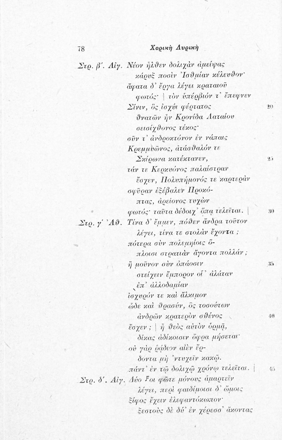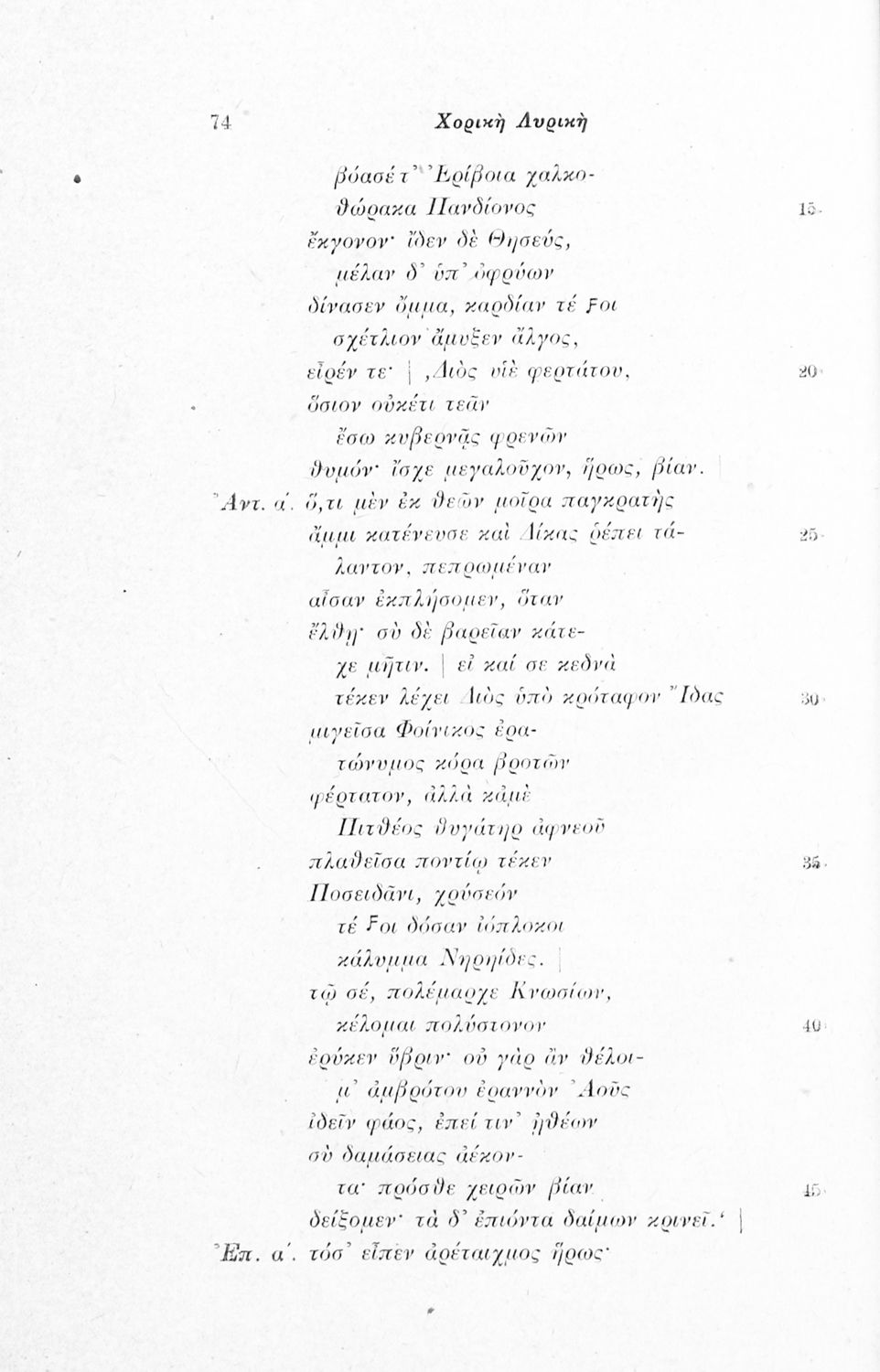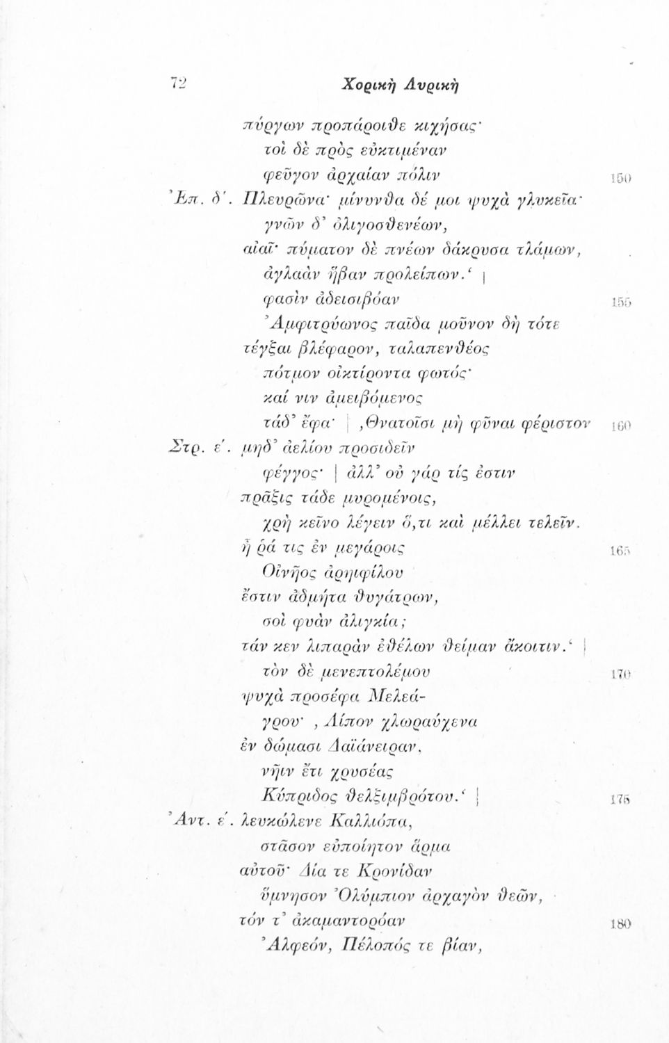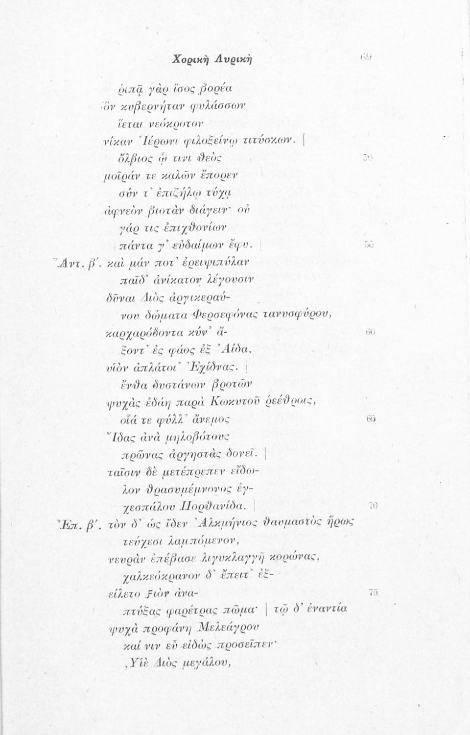 Μαθητικό βοήθημα Αρχαίων Ελληνικών που περιλαμβάνει αποσπάσματα έργων αρχαίων Ελλήνων λυρικών, πολιτικές και γνωμικές ελεγείες, ιάμβους και επιγράμματα. Περιέχει και υπόμνημα με ερμηνευτικά, πραγματολογικά, γλωσσικά και γραμματικά σχόλια.