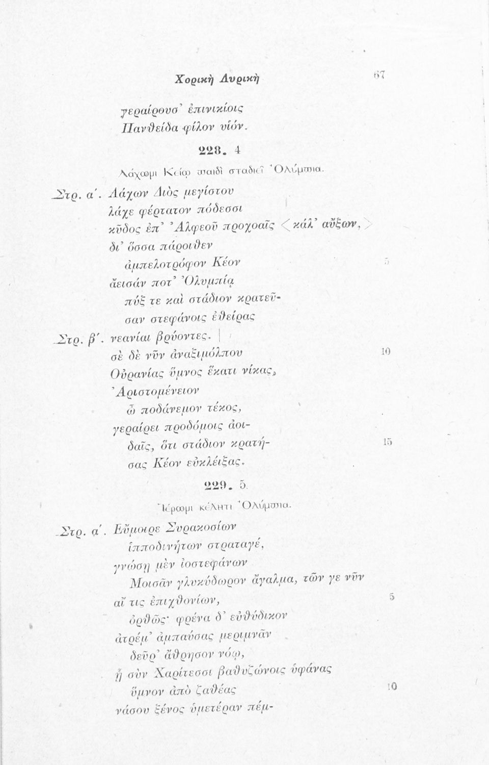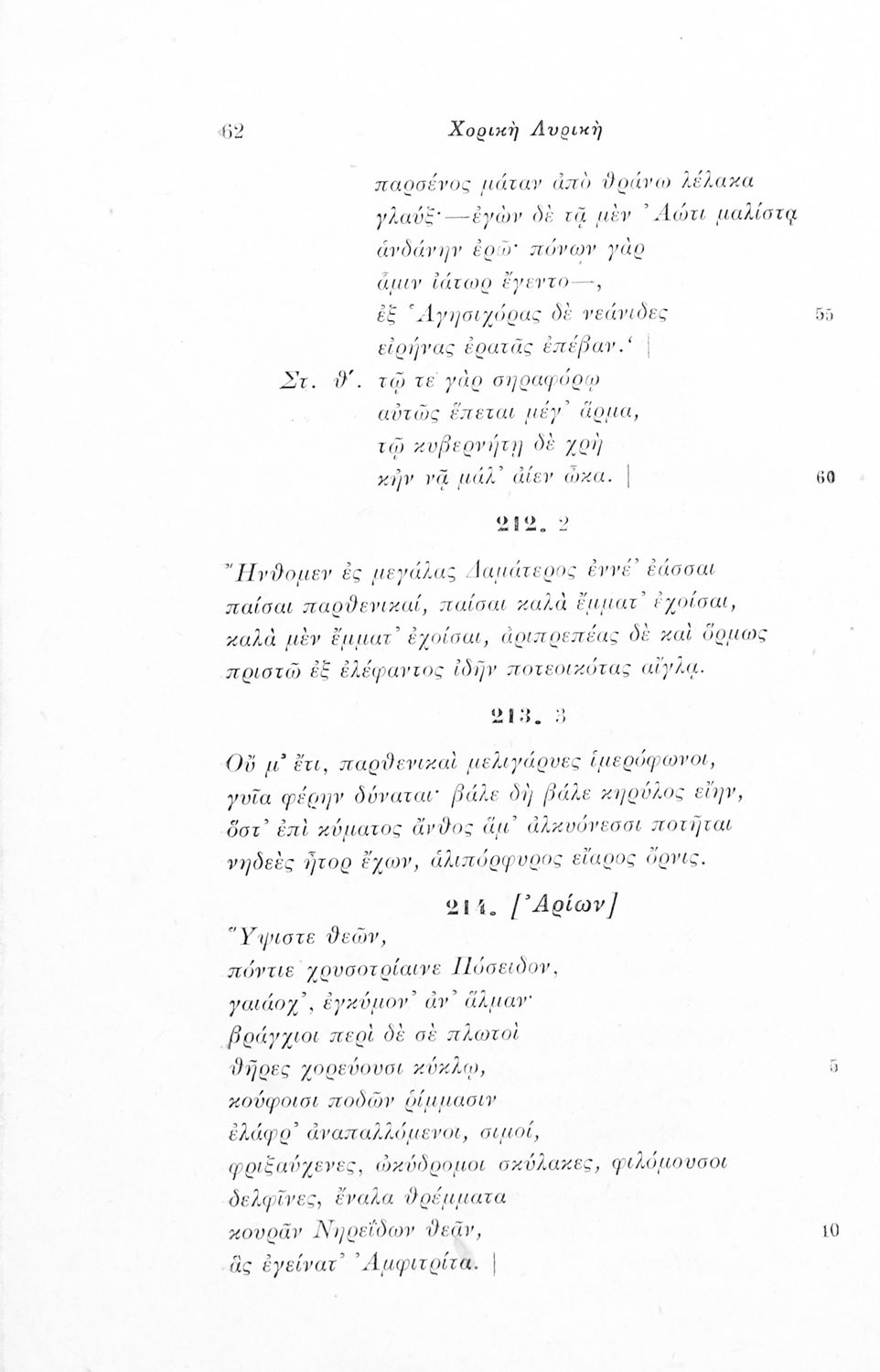 Σχολικό εγχειρίδιο Αρχαίων Ελληνικών που περιέχει αποσπάσματα αρχαίων Ελλήνων λυρικών, εισαγωγή και ερμηνευτικά σχόλια. Κοσμείται από μικρά διακοσμητικά σχέδια.