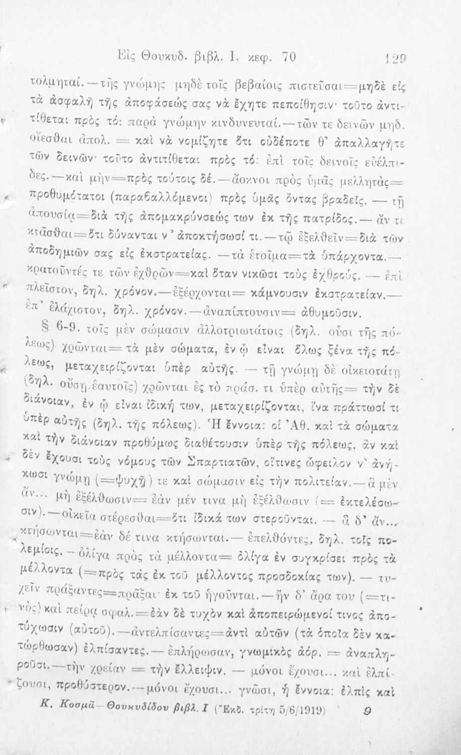 Θουκυδίδου Το πρώτον βιβλίον κατ΄ εκλογήν εκδοθέν δια την Β΄ και Γ΄ τάξιν των Γυμνασίων