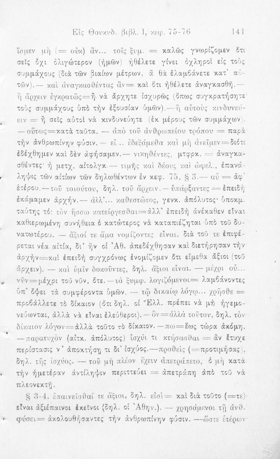 Σχολικό εγχειρίδιο Αρχαίων Ελληνικών Β΄ και Γ΄ Γυμνασίου που περιλαμβάνει εισαγωγή στη ζωή και το έργο του Θουκυδίδη, αποσπάσματα από το πρώτο βιβλίο της Ιστορίας, και ερμηνευτικά, πραγματολογικά και γλωσσικά σχόλια.