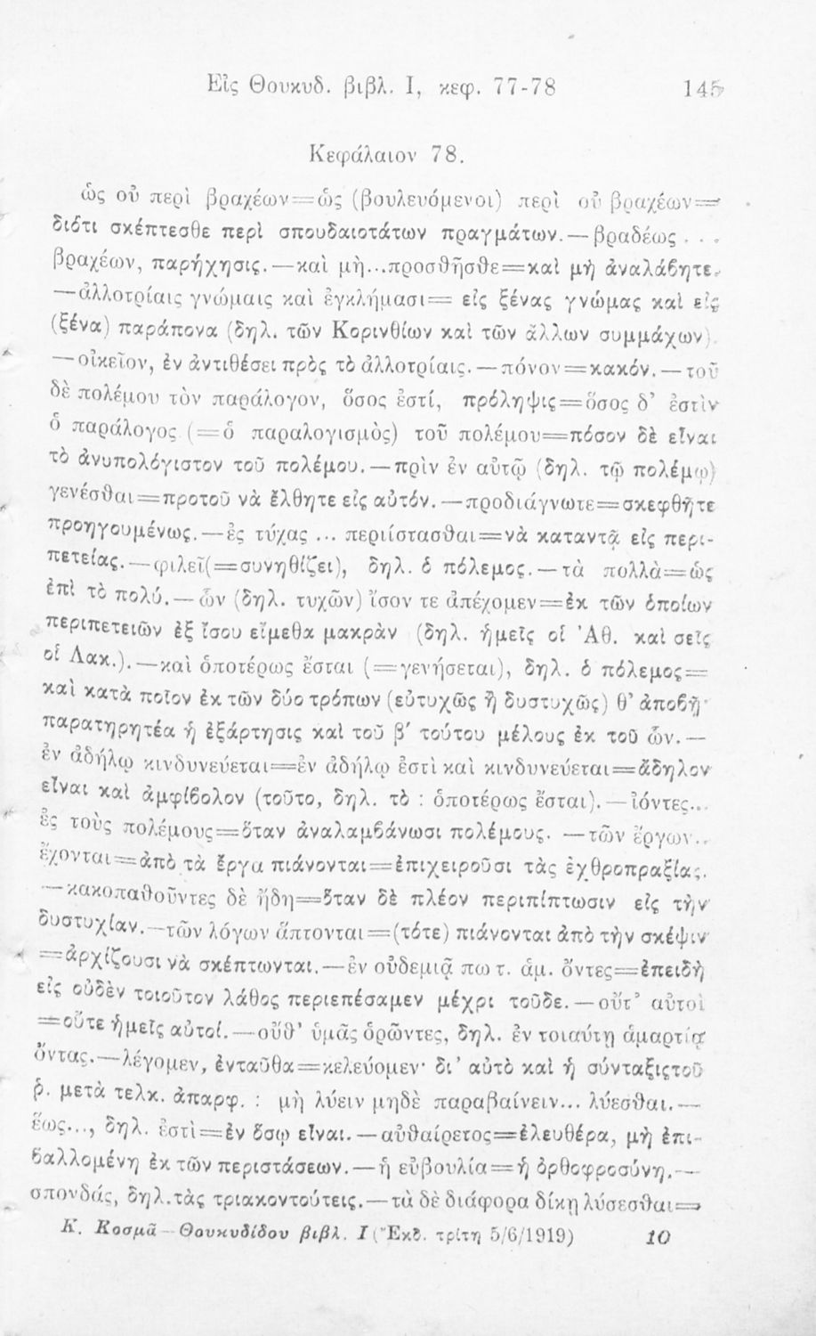 Θουκυδίδου Το πρώτον βιβλίον κατ΄ εκλογήν εκδοθέν δια την Β΄ και Γ΄ τάξιν των Γυμνασίων