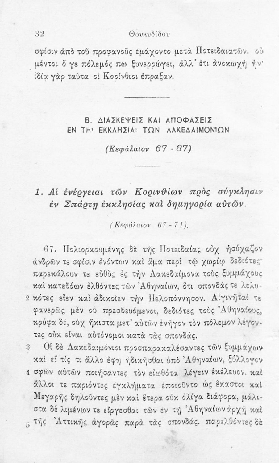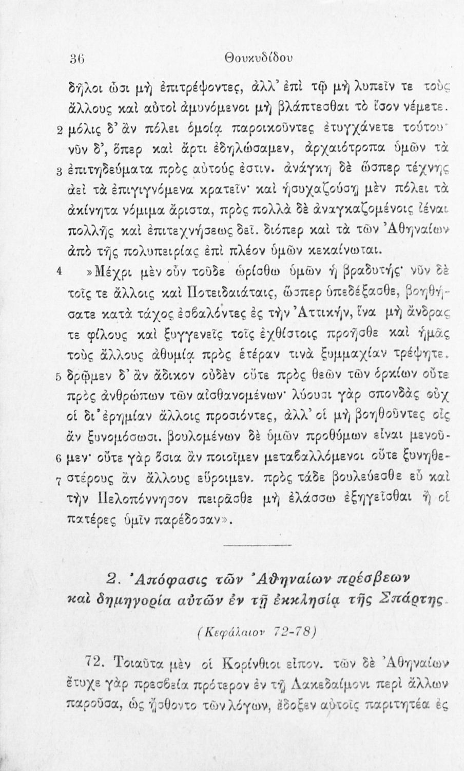 Θουκυδίδου Το πρώτον βιβλίον κατ΄ εκλογήν εκδοθέν δια την Β΄ και Γ΄ τάξιν των Γυμνασίων