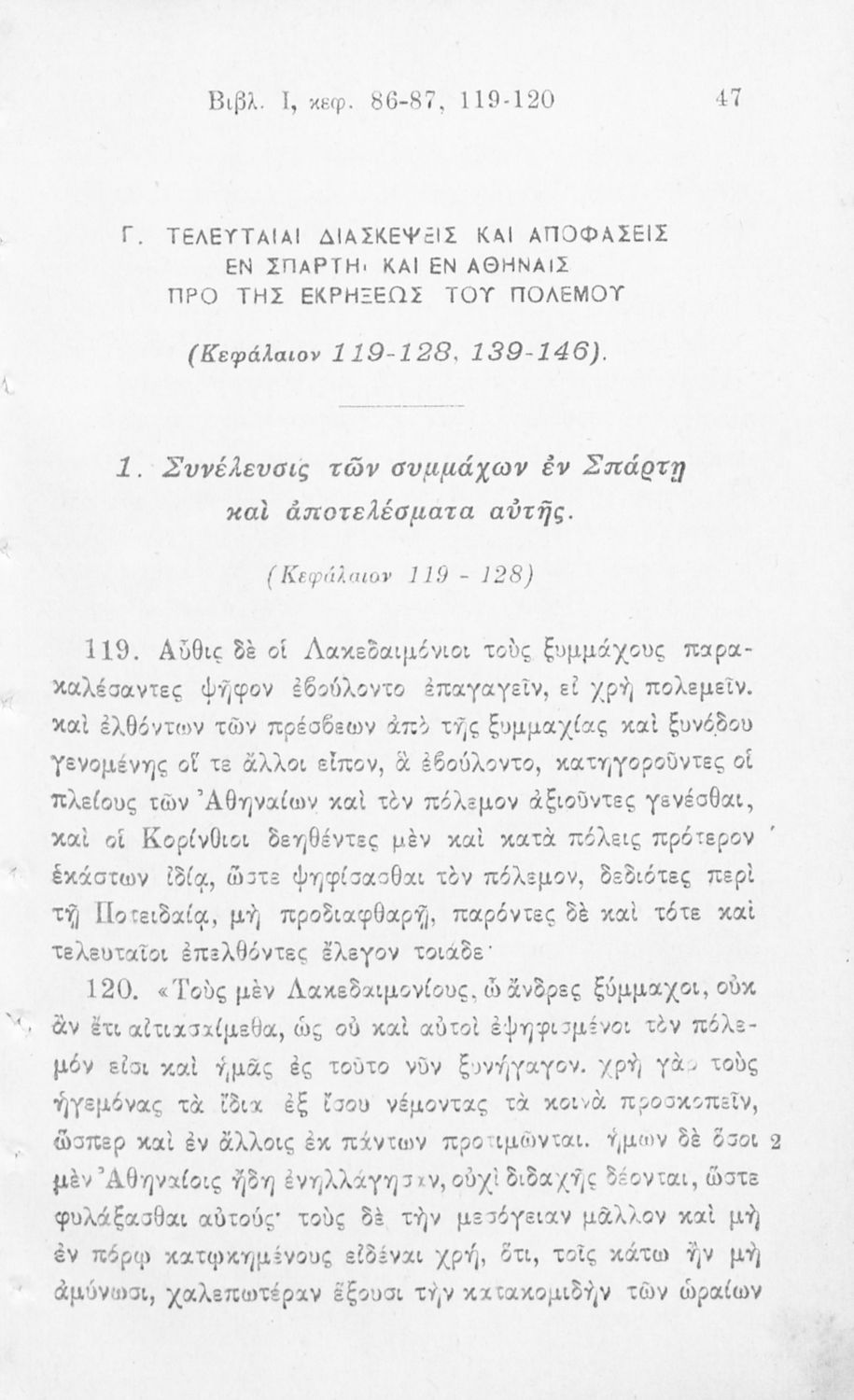 Θουκυδίδου Το πρώτον βιβλίον κατ΄ εκλογήν εκδοθέν δια την Β΄ και Γ΄ τάξιν των Γυμνασίων
