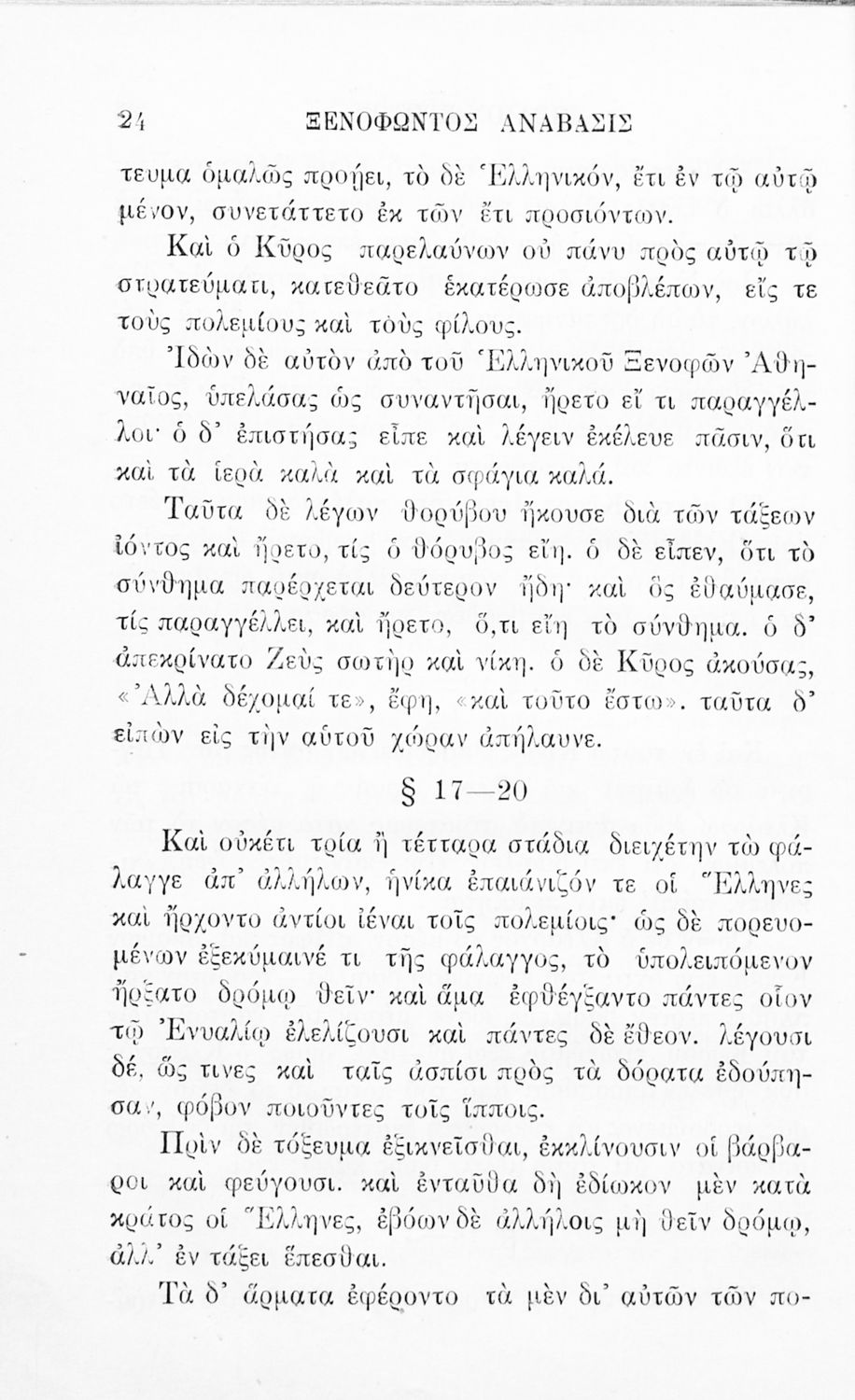 Σχολικό εγχειρίδιο Αρχαίων Ελληνικών για τα Ελληνικά Σχολεία, Γυμνάσια και Παρθεναγωγεία που περιλαμβάνει αποσπάσματα από το έργο του Ξενοφώντα Κύρου Ανάβασις, και λεξικογραφικές παρατηρήσεις.
