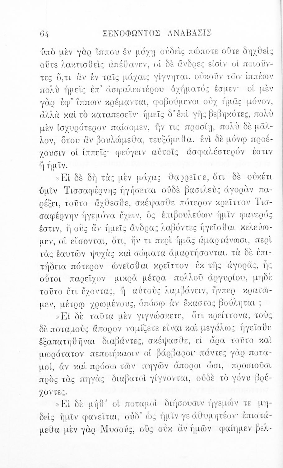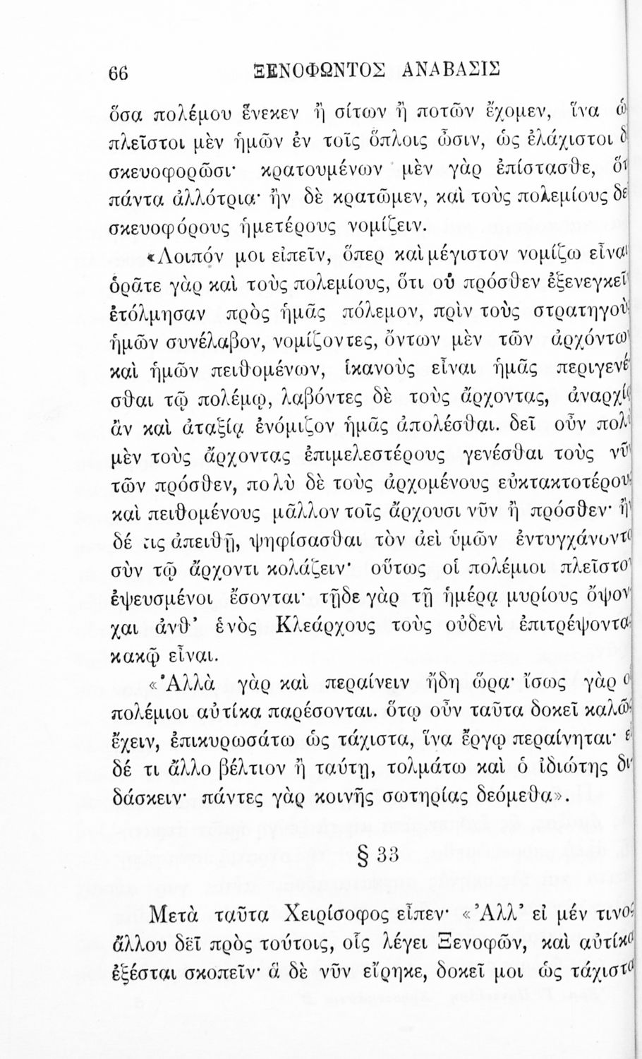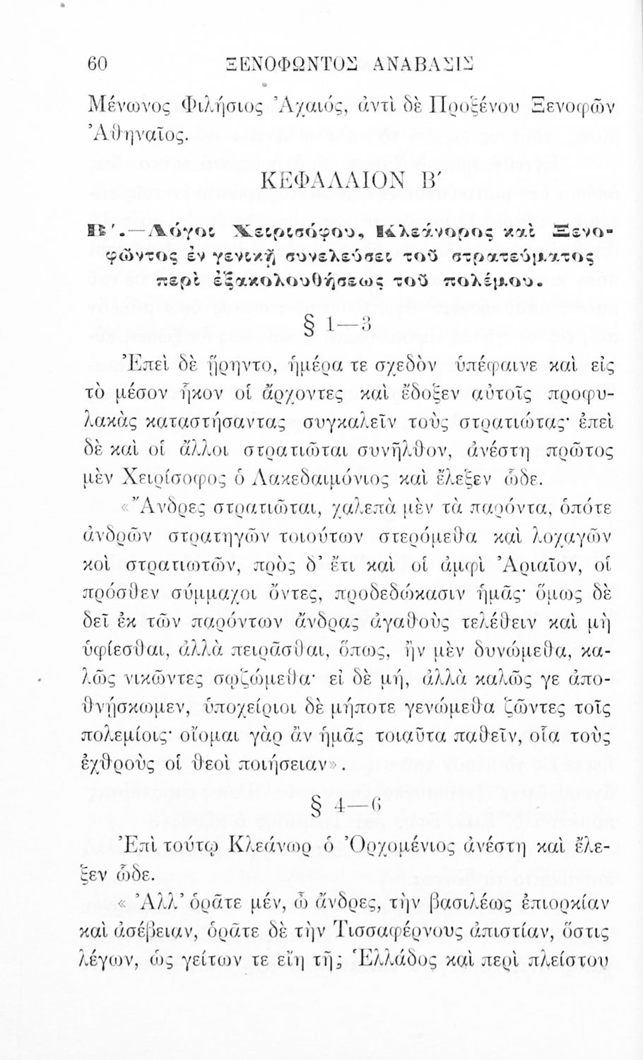 Σχολικό εγχειρίδιο Αρχαίων Ελληνικών για τις Β' Ελληνικού Σχολείου και Β΄ Αστικού Σχολείου Θηλέων που περιλαμβάνει το έργο του Ξενοφώντα Κύρου Ανάβασις, εισαγωγικά σχόλια για τη ζωή και το έργο του, ερμηνευτικές και γραμματικές παρατηρήσεις, λεξικολογικά σχόλια και πίνακα κυρίων ονομάτων.