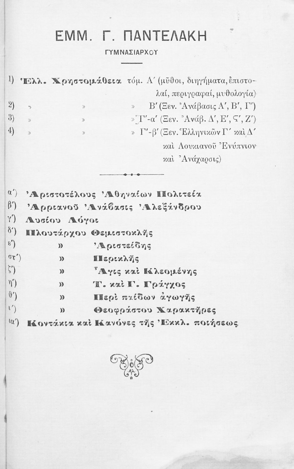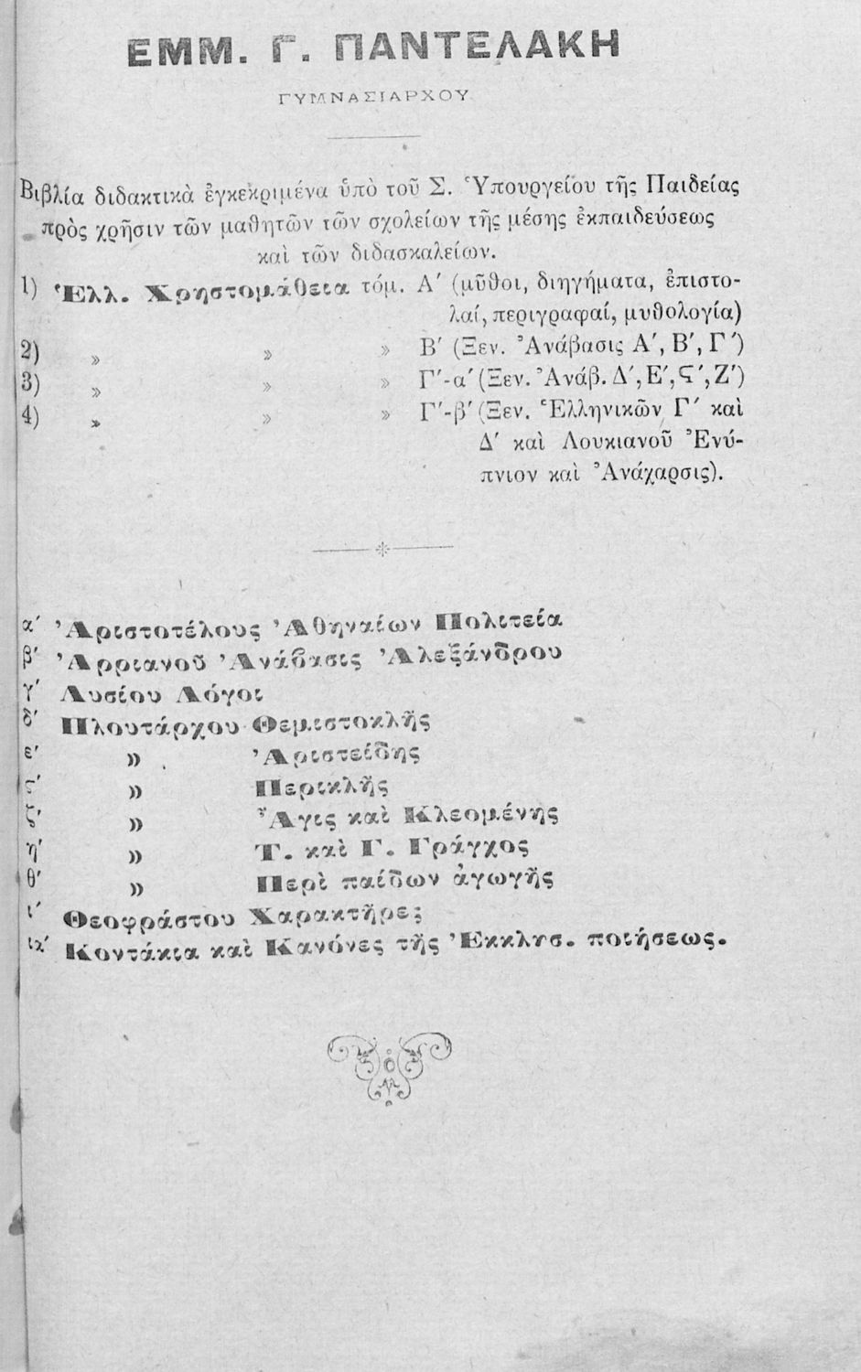 Τάξη:  Α' Γυμνάσιου / Β' Γυμνάσιου / Ανώτερα Παρθεναγωγεία / Α' Διδασκαλείου