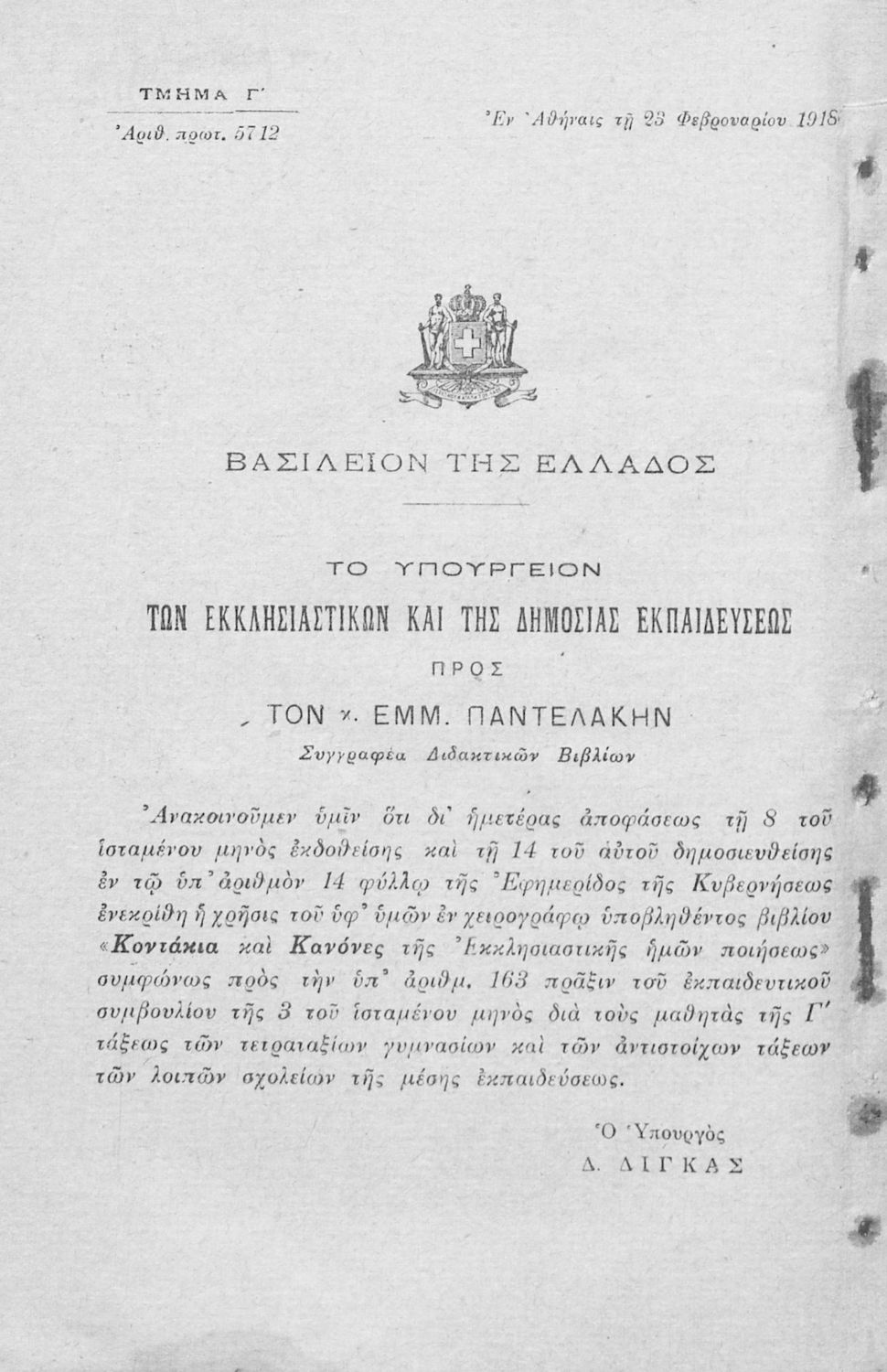 Υπουργική απόφαση / Σύμβαση: 5712/23-2-1916