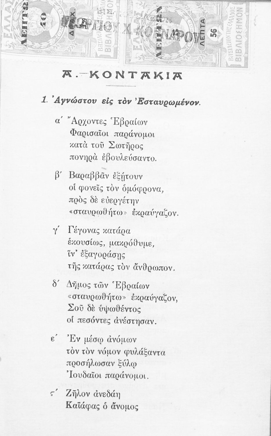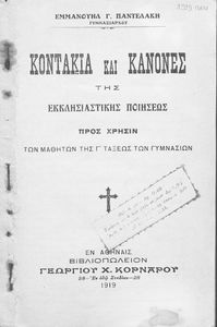 Τίτλος: Κοντάκια και κανόνες της εκκλησιαστικής ποιήσεως προς χρήσιν των μαθητών της Γ΄ τάξεως των Γυμνασίων