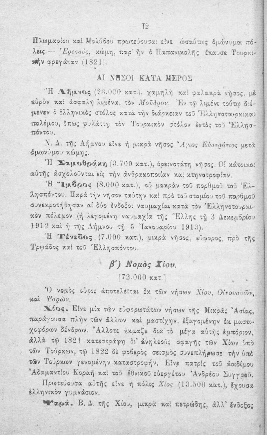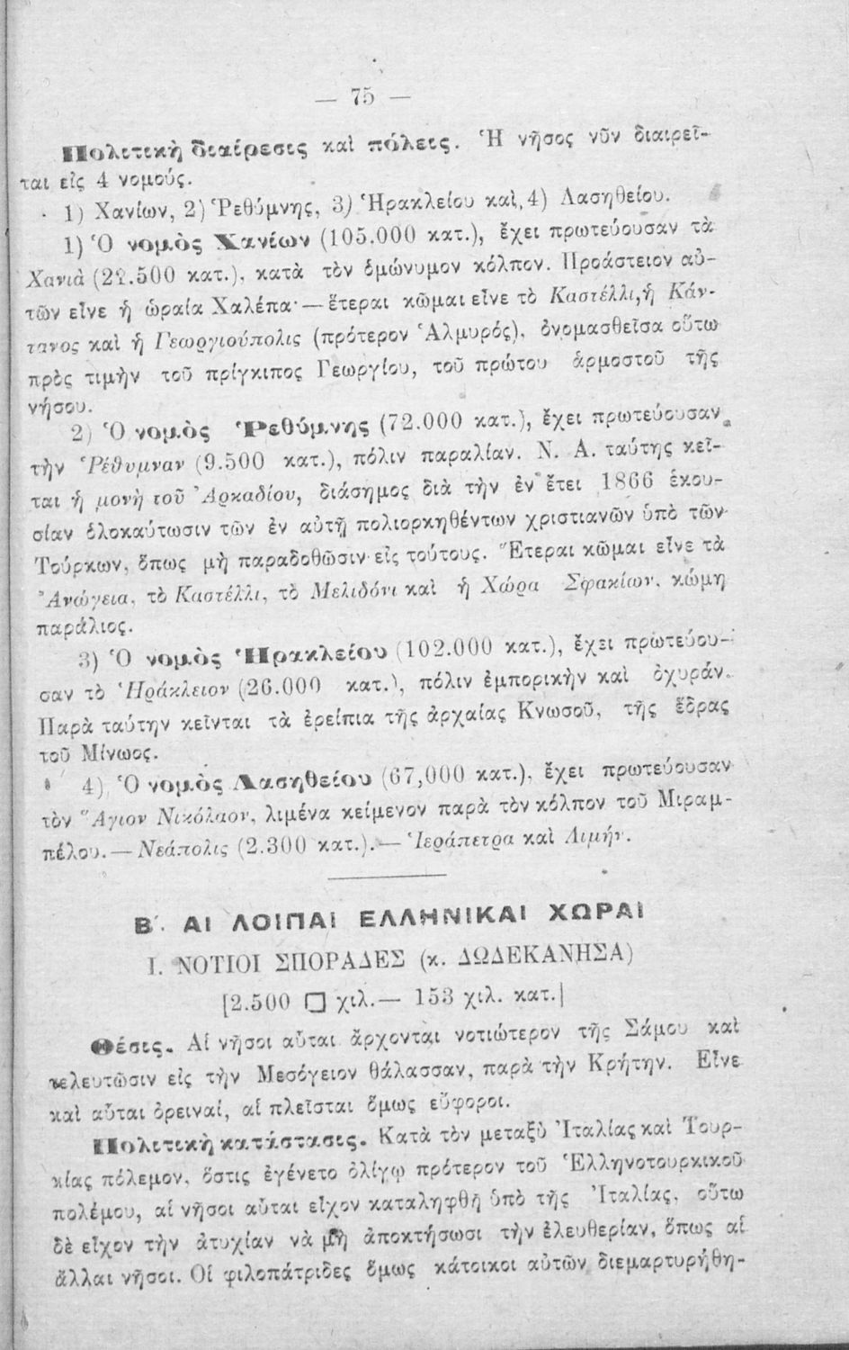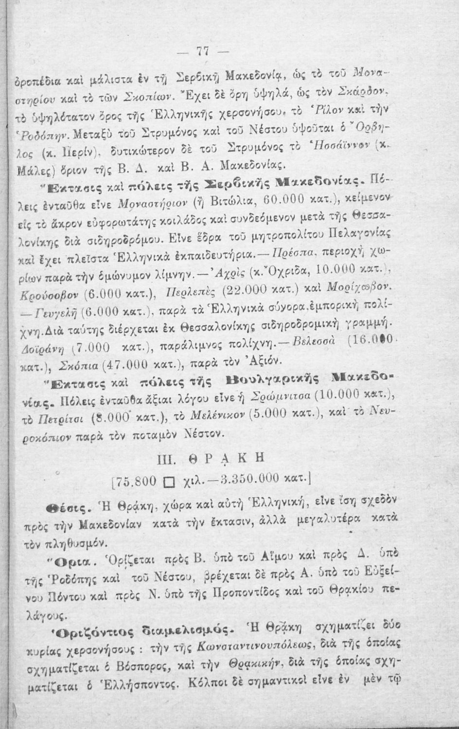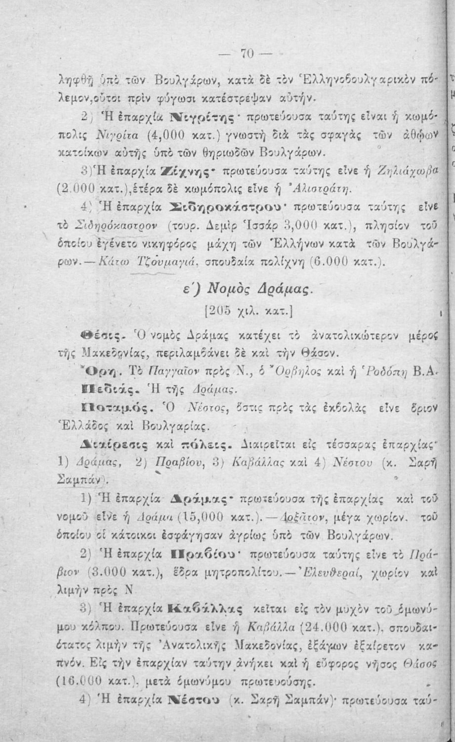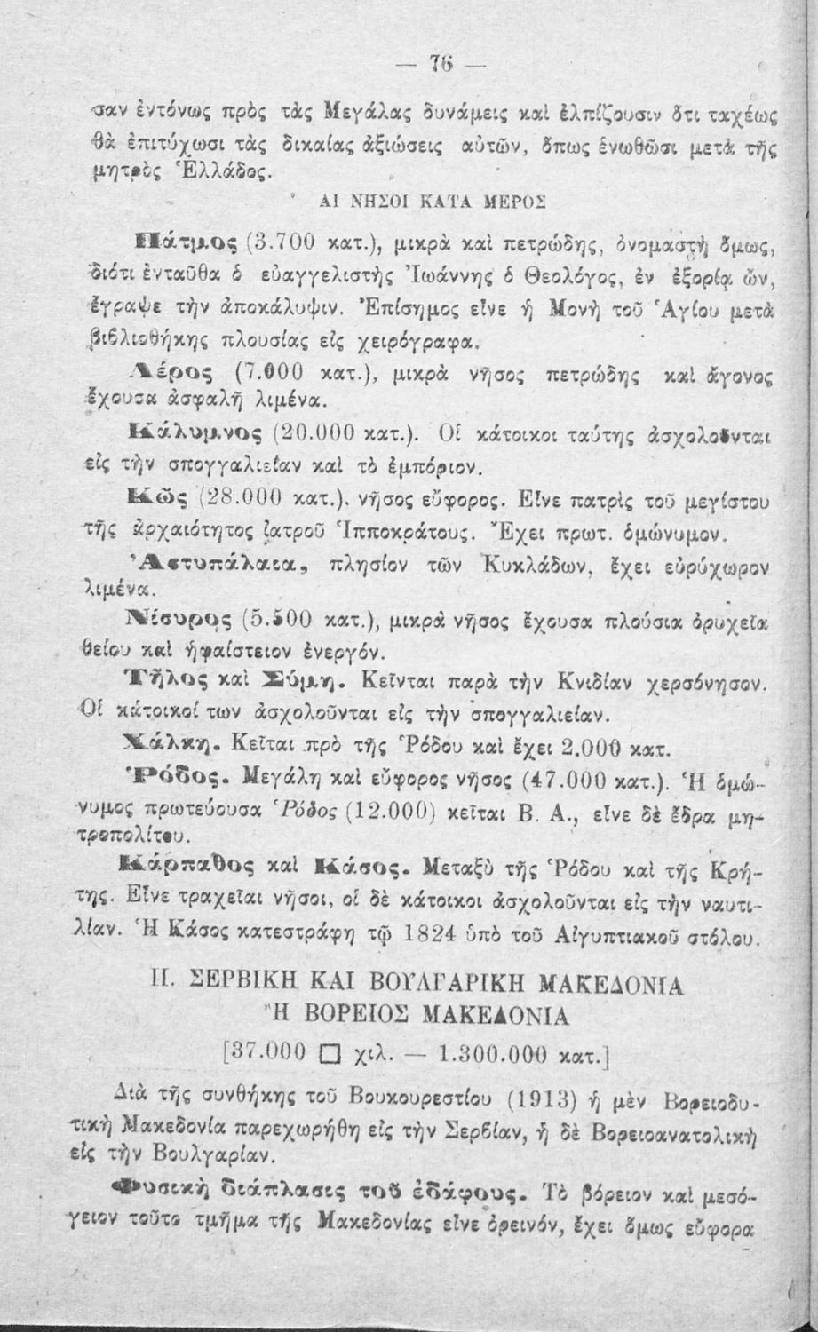 Σχολικό εγχειρίδιο Γεωγραφίας Δημοτικού που παρουσιάζει την φυσική, οικονομική και πολιτική γεωγραφία της Παλαιάς και Νέας Ελλάδας. Περιέχει και εκτενή αναφορά στις "λοιπές ελληνικές χώρες" στις οποίες περιλαμβάνει την Σερβική και Βουλγαρική Μακεδονία, τη Θράκη, τα Δωδεκάνησα, την Ανατολική Ρωμυλία, την Μικρά Ασία, την Συρία και την Παλαιστίνη.