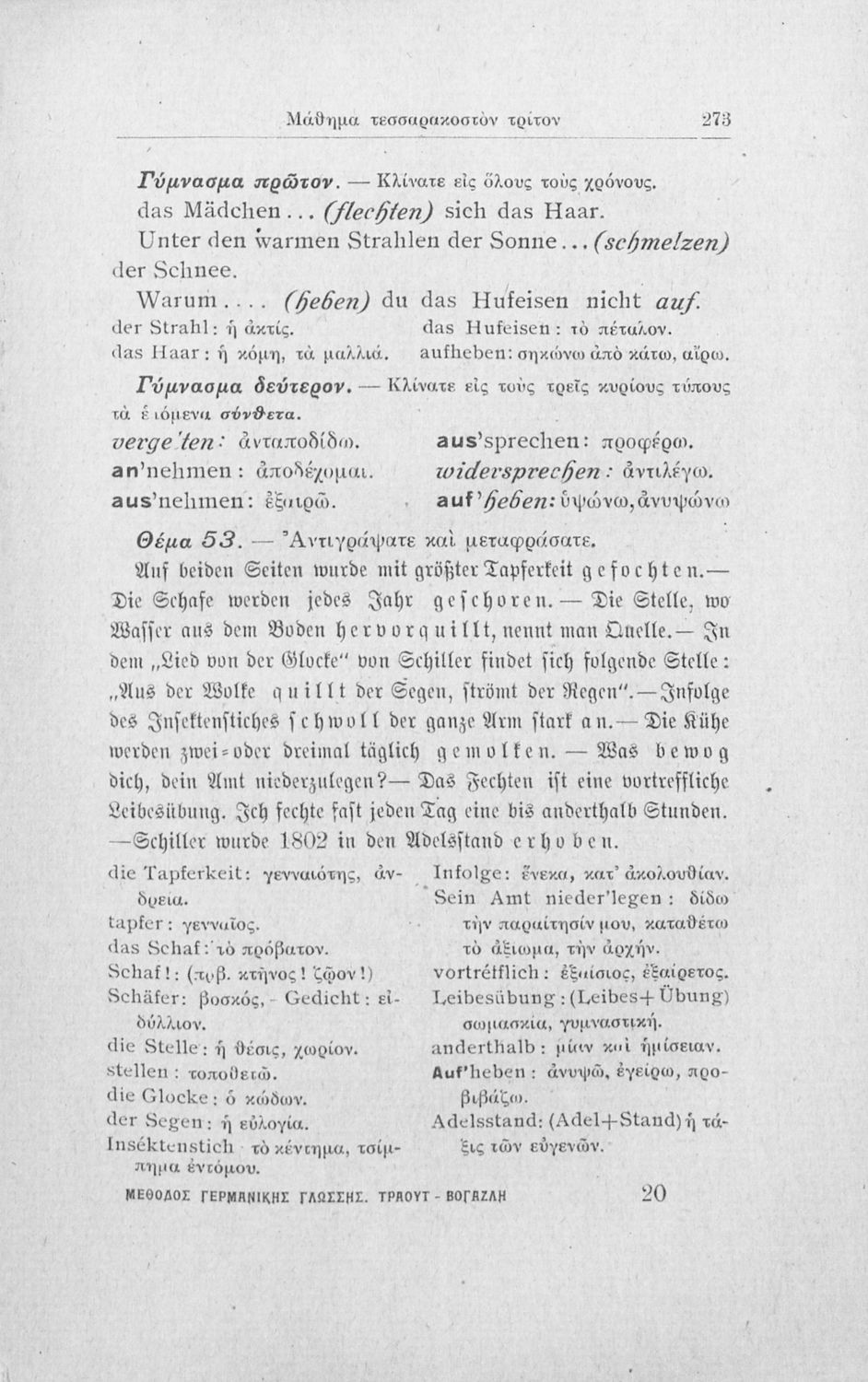 Γλώσσα: Γερμανικά / Καθαρεύουσα