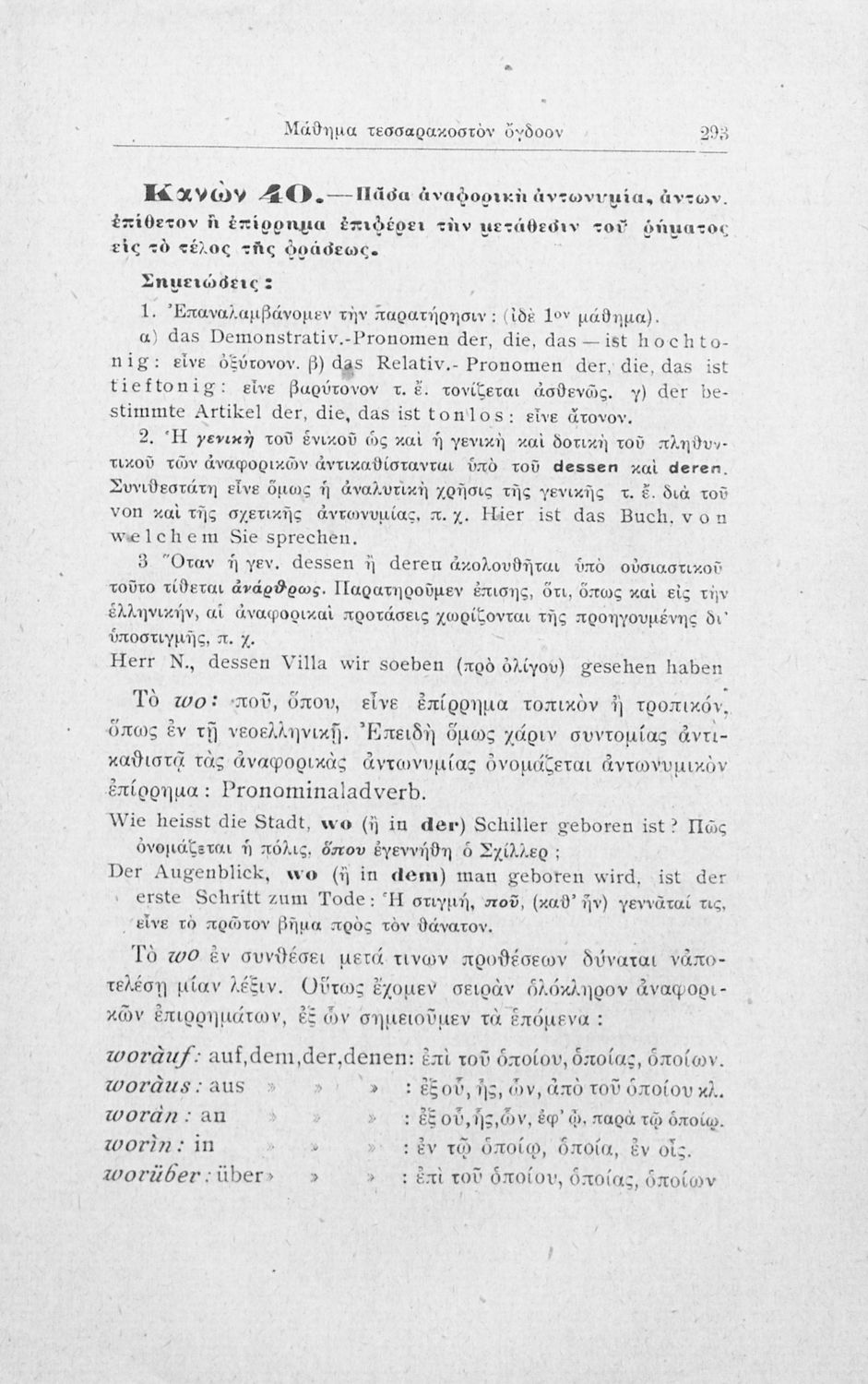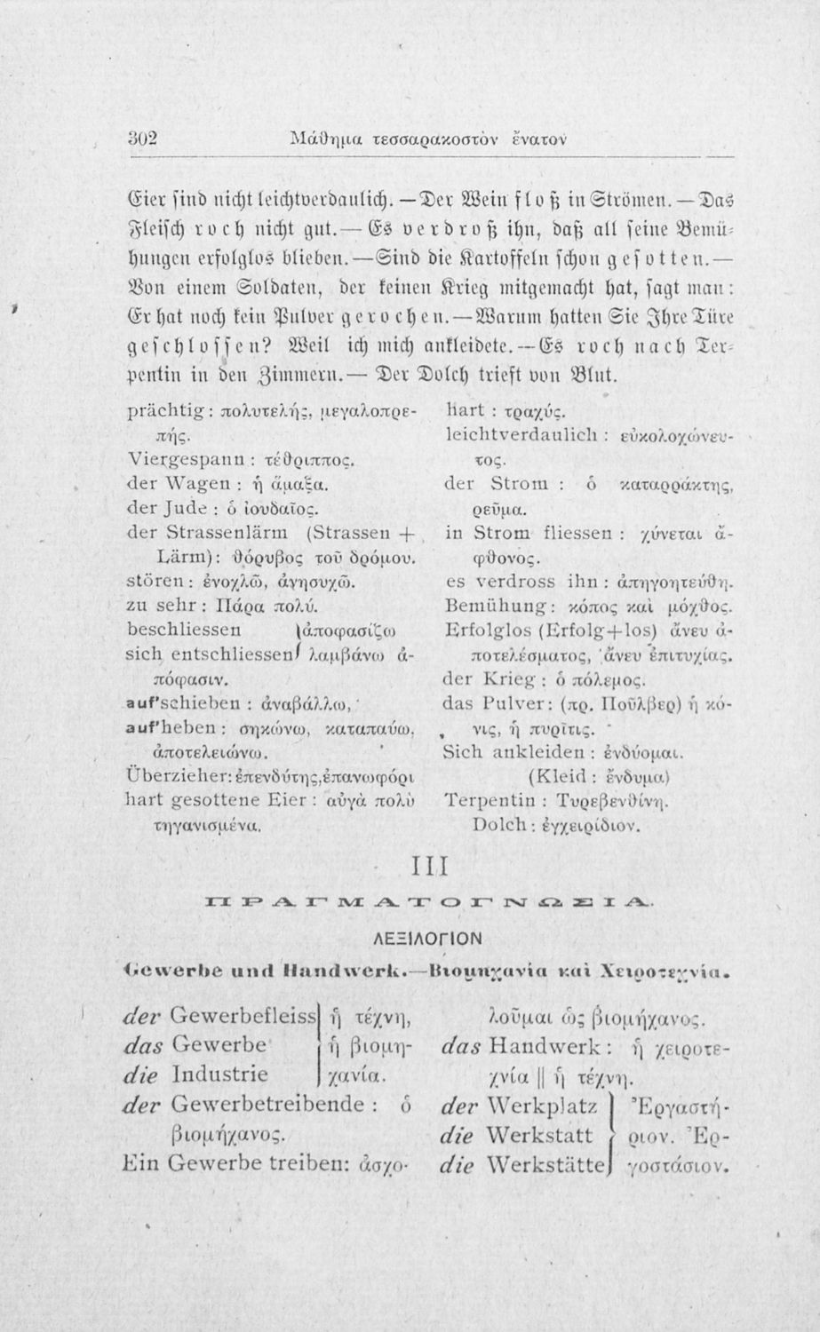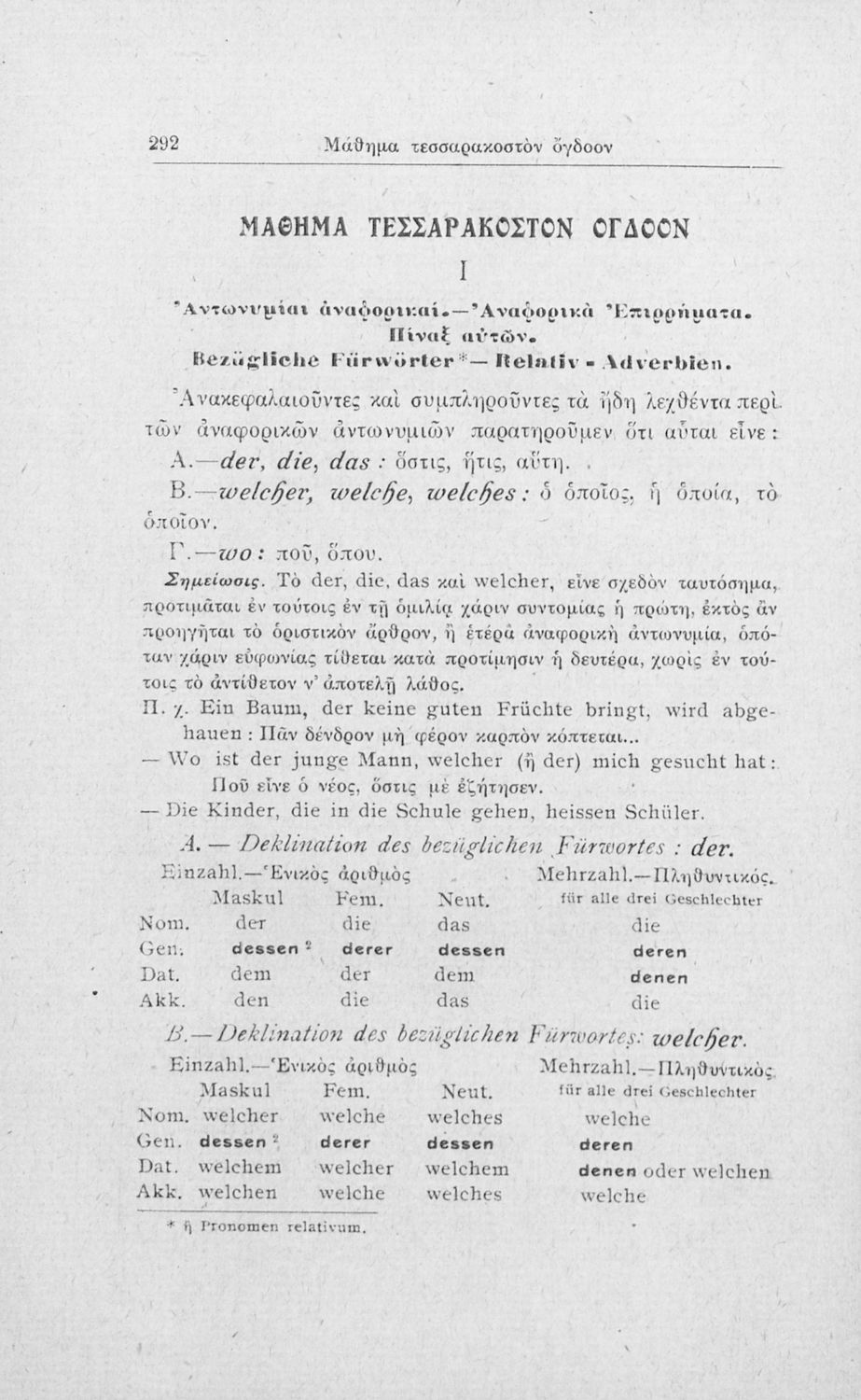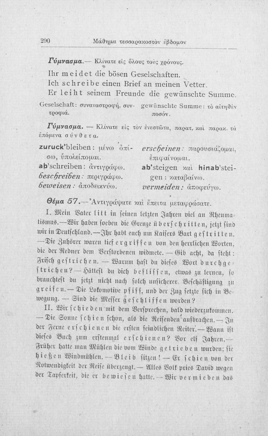 Πρόκειται για εγχειρίδιο που στόχο είχε την εκμάθηση των γραμματικών και συντακτικών φαινομένων της Γερμανικής γλώσσας σε Ελληνικό πληθυσμό.