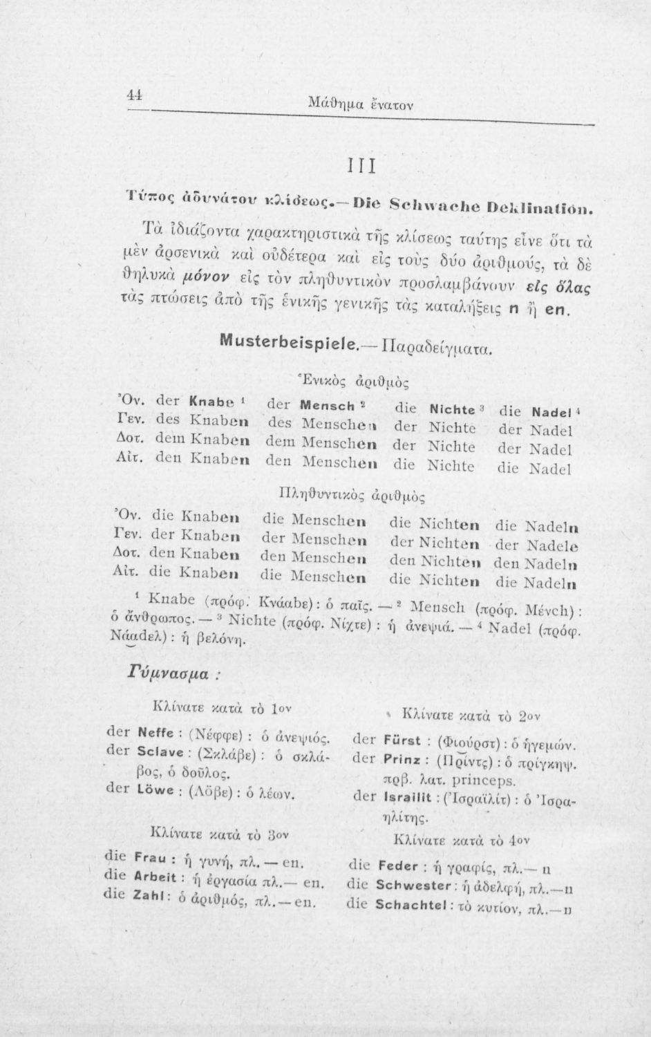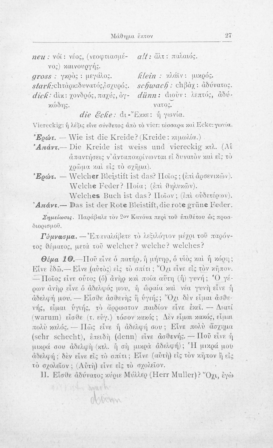 Πρόκειται για εγχειρίδιο που στόχο είχε την εκμάθηση των γραμματικών και συντακτικών φαινομένων της Γερμανικής γλώσσας σε Ελληνικό πληθυσμό.