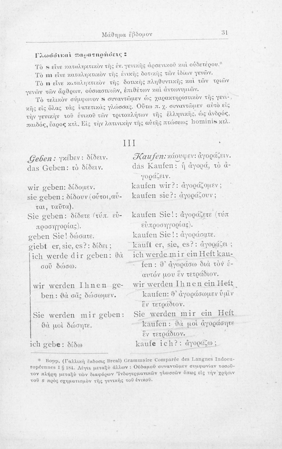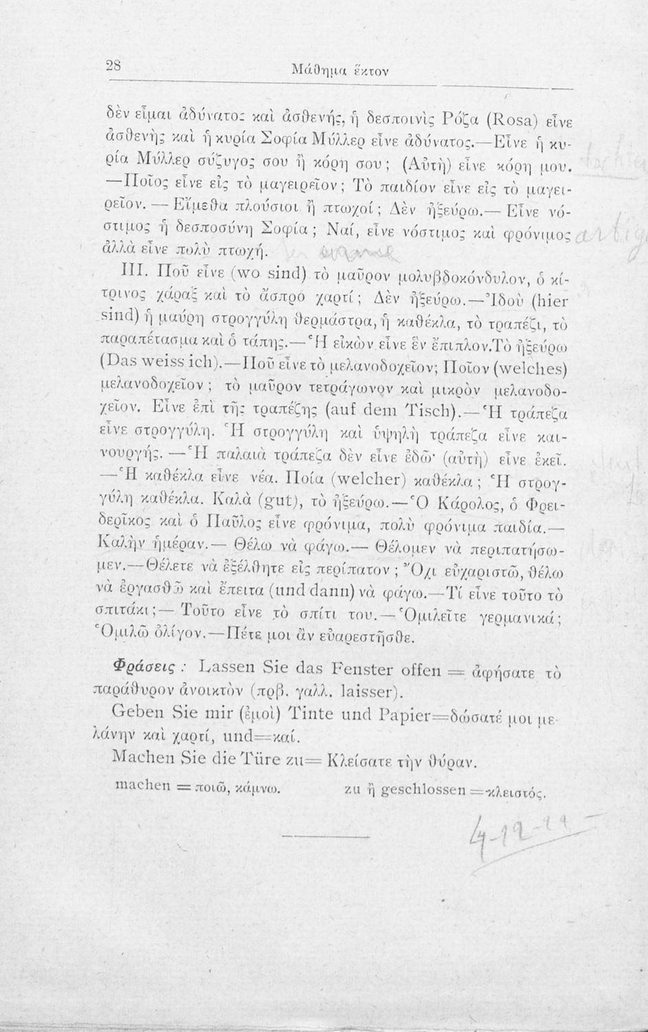 Γλώσσα: Γερμανικά / Καθαρεύουσα