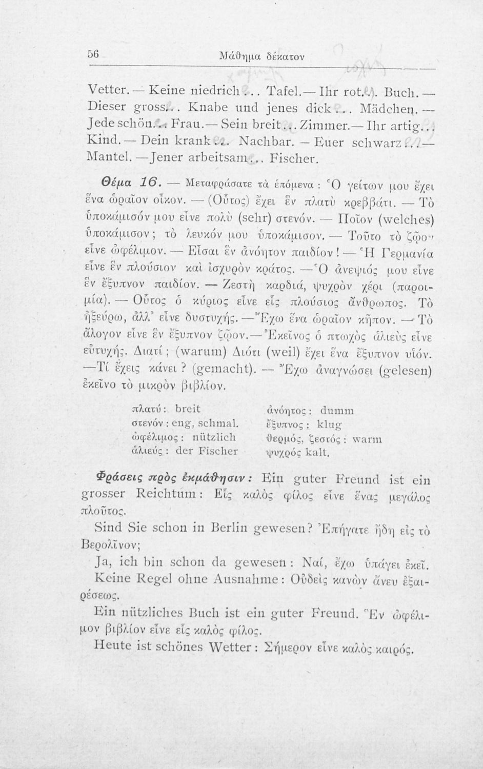 Πρόκειται για εγχειρίδιο που στόχο είχε την εκμάθηση των γραμματικών και συντακτικών φαινομένων της Γερμανικής γλώσσας σε Ελληνικό πληθυσμό.