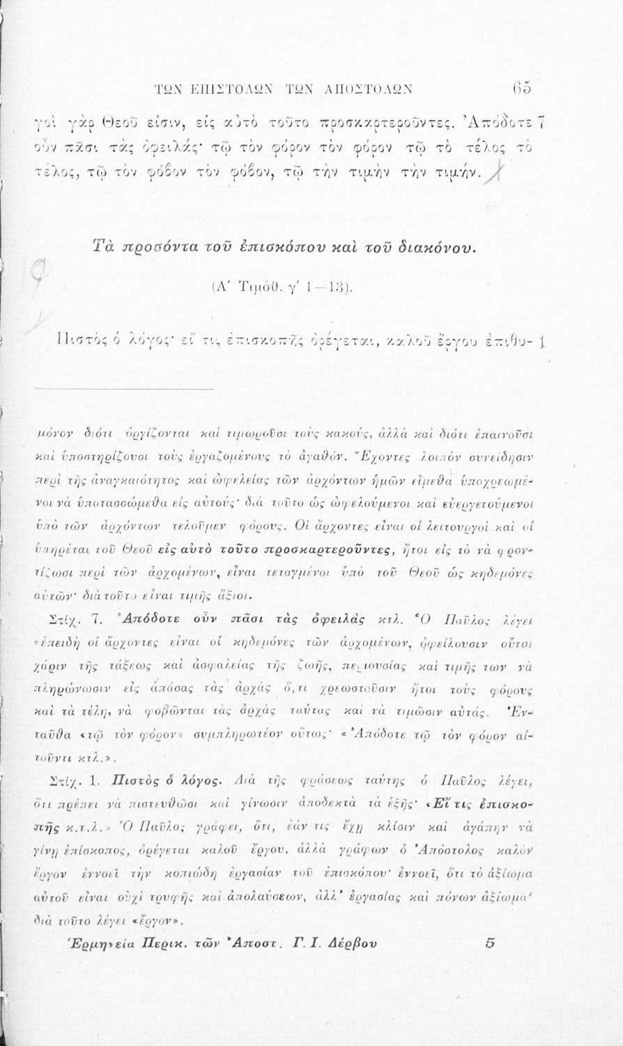 Ερμηνεία περικοπών των επιστολών και των πράξεων των Αποστόλων προς χρήσιν της Β΄ τάξεως του Γυμνασίου