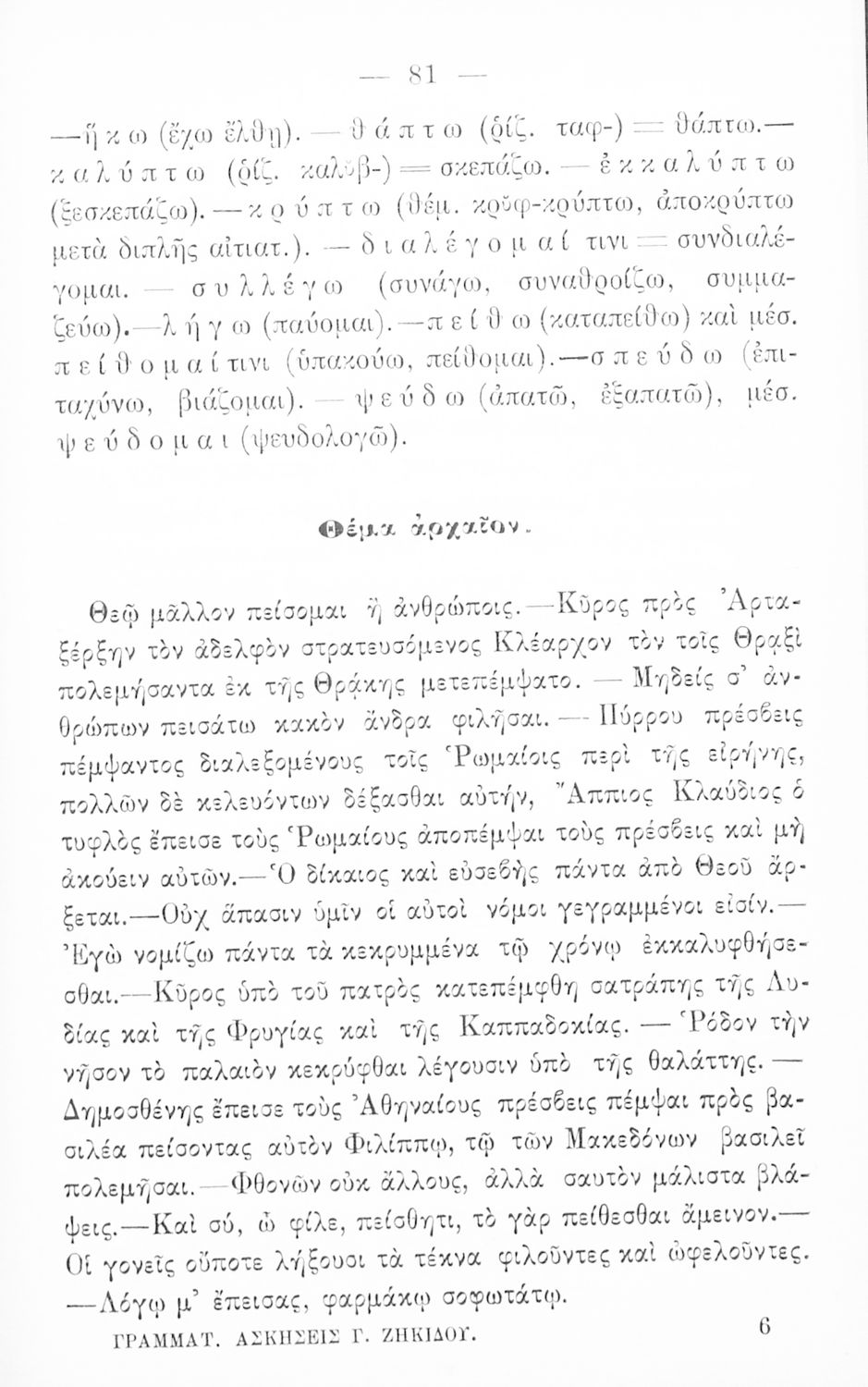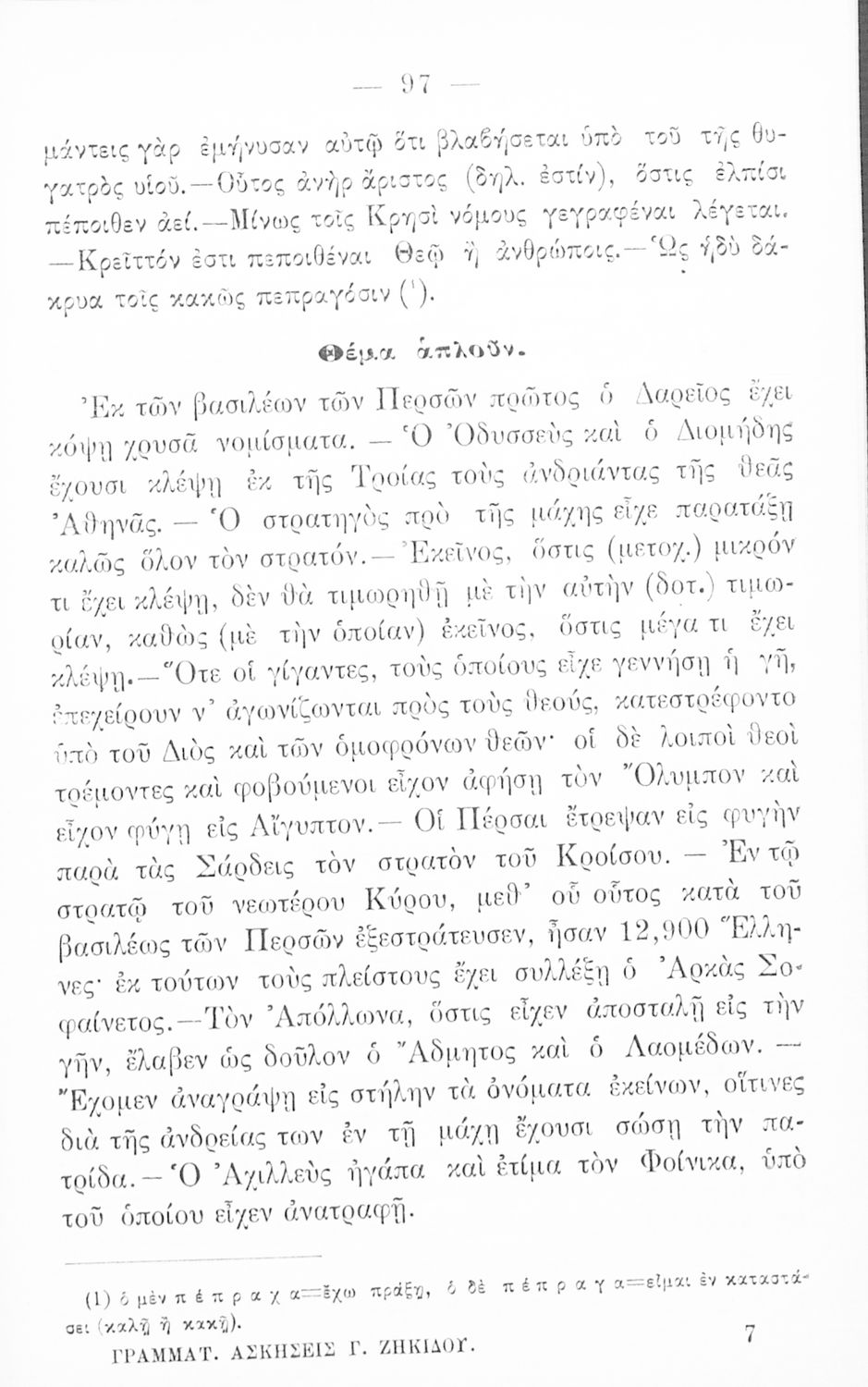 Γραμματικαί ασκήσεις εις το τυπικόν της αττικής διαλέκτου (Μέρος α΄ ) δια την Α΄ τάξιν των Ελληνικών Σχολείων και Παρθεναγωγείων