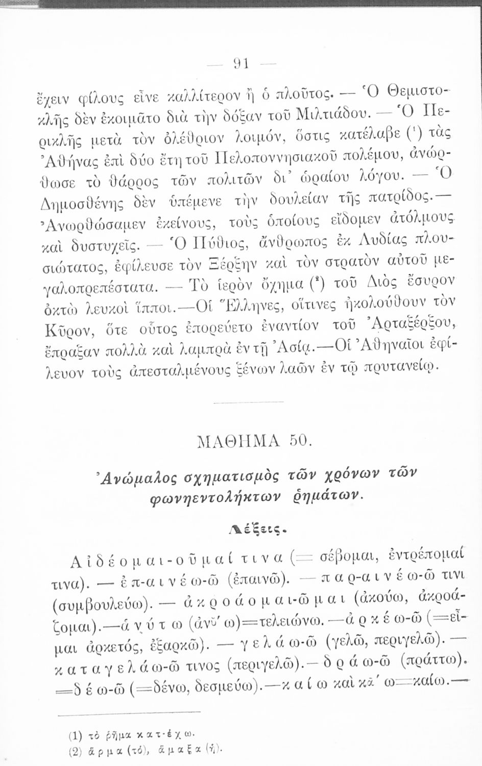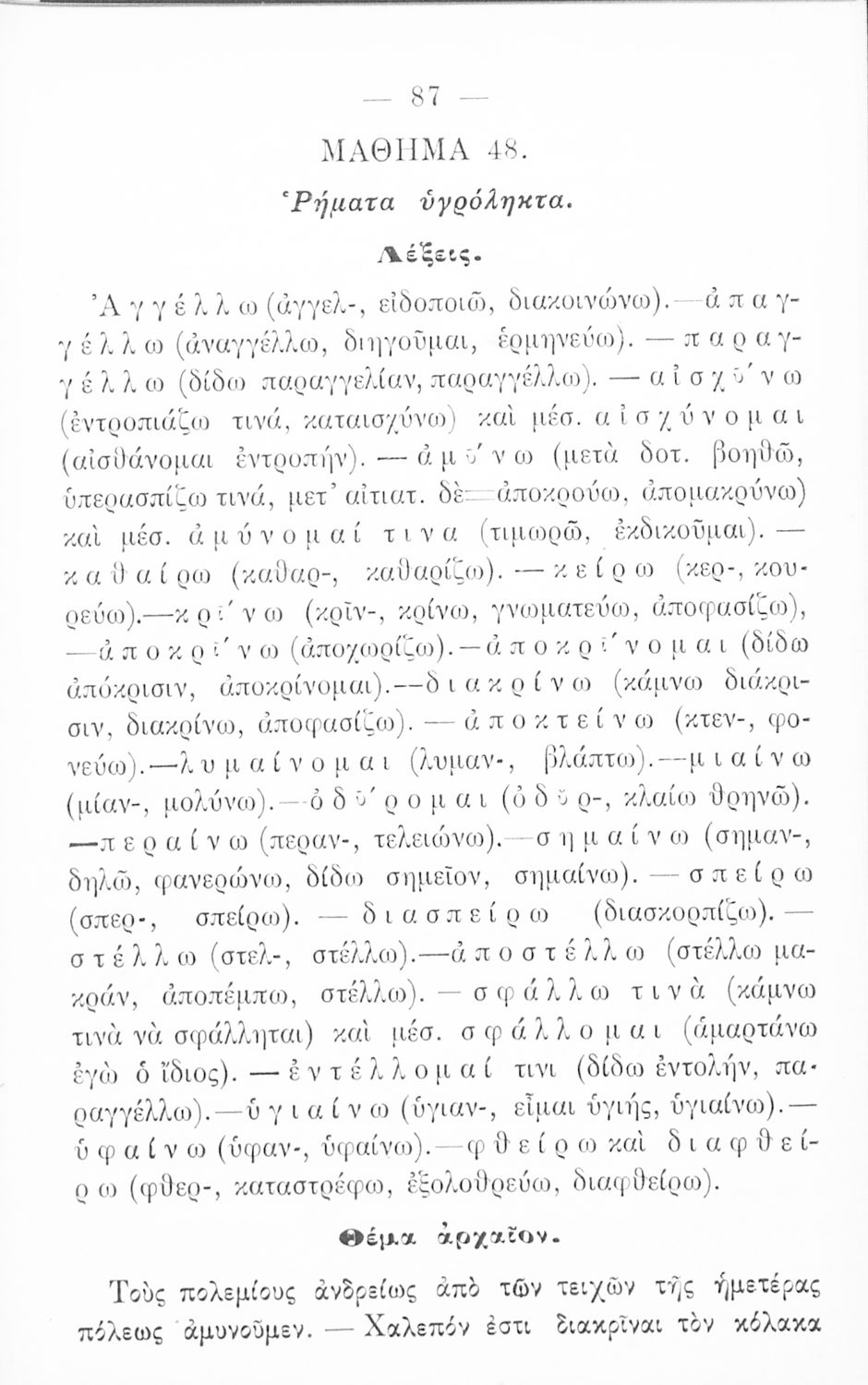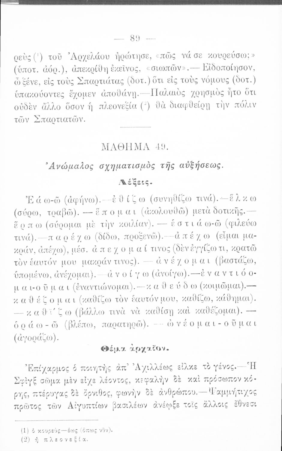 Μαθητικό βοήθημα Αρχαίων Ελληνικών για τις Α΄, Β΄, Γ' Ελληνικού Σχολείου και Παρθεναγωγείου για το μάθημα των Αρχαίων που περιλαμβάνει λεξικό ανωμάλων ρημάτων και γραμματικές σημειώσεις