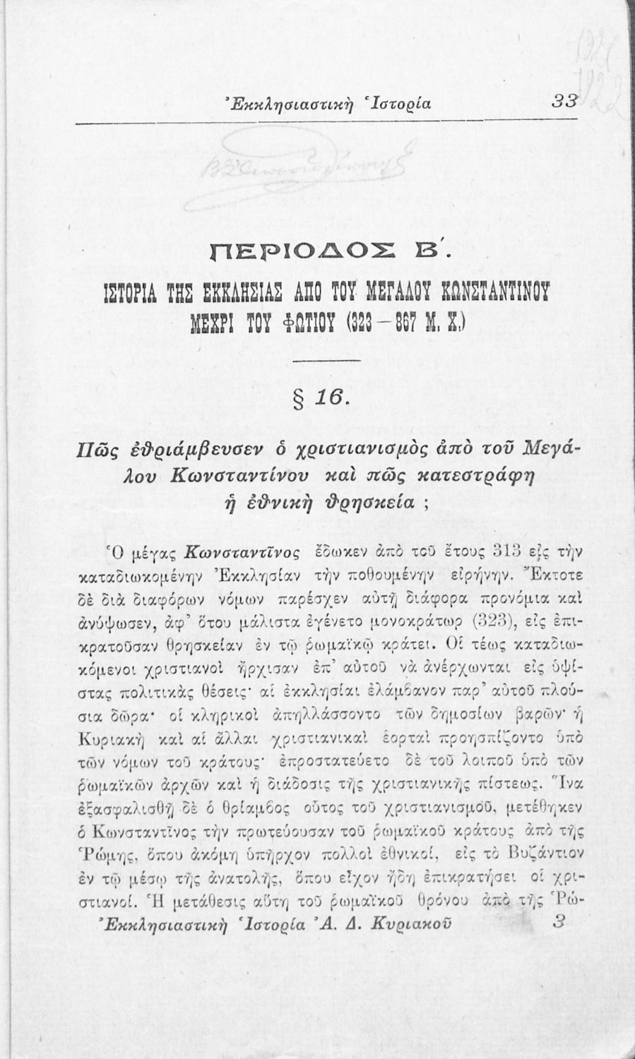 Τίτλος: Στοιχειώδης εκκλησιαστική ιστορία προς χρήσιν των Γυμνασίων