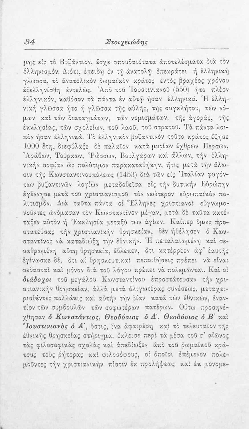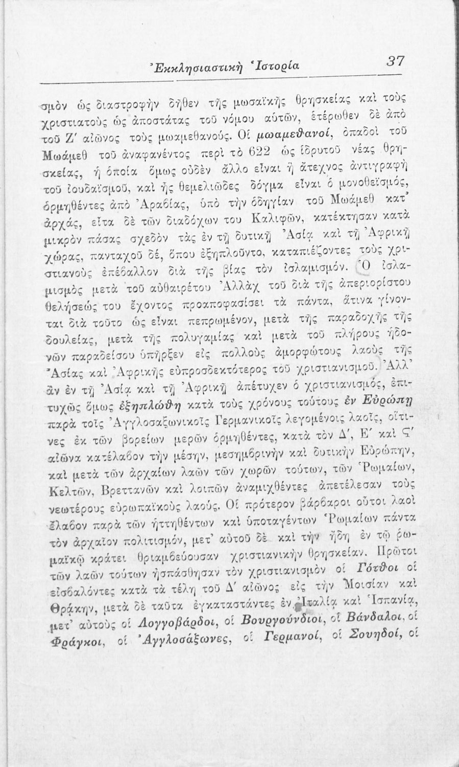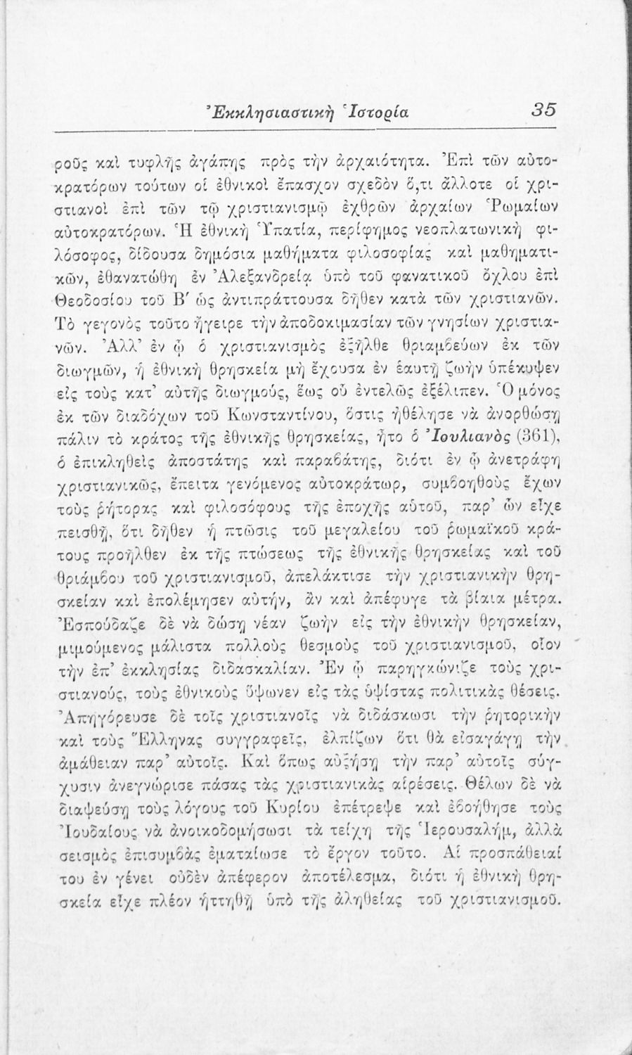 Σχολικό εγχειρίδιο Εκκλησιαστικής Ιστορίας δομημένο ιστορικά με βάση το σχίσμα των εκκλησιών σε ανατολική και δυτική και την άλωση της Κωνσταντινούπολης. Το εγχειρίδιο εγκρίθηκε από την Ιερά Σύνοδο. Ο συγγραφέας ήταν καθηγητής Θεολογίας στο Εθνικό Πανεπιστήμιο.