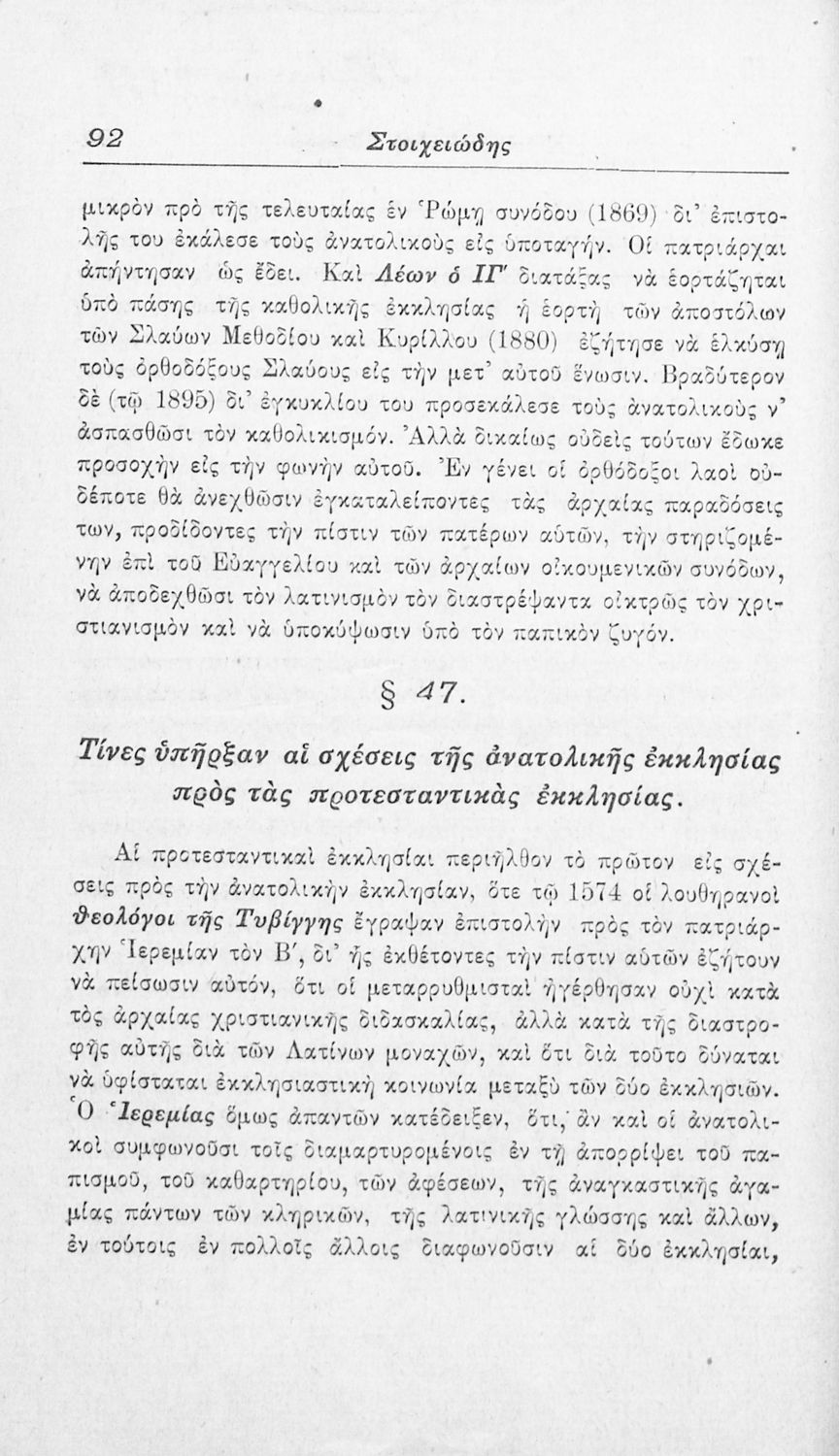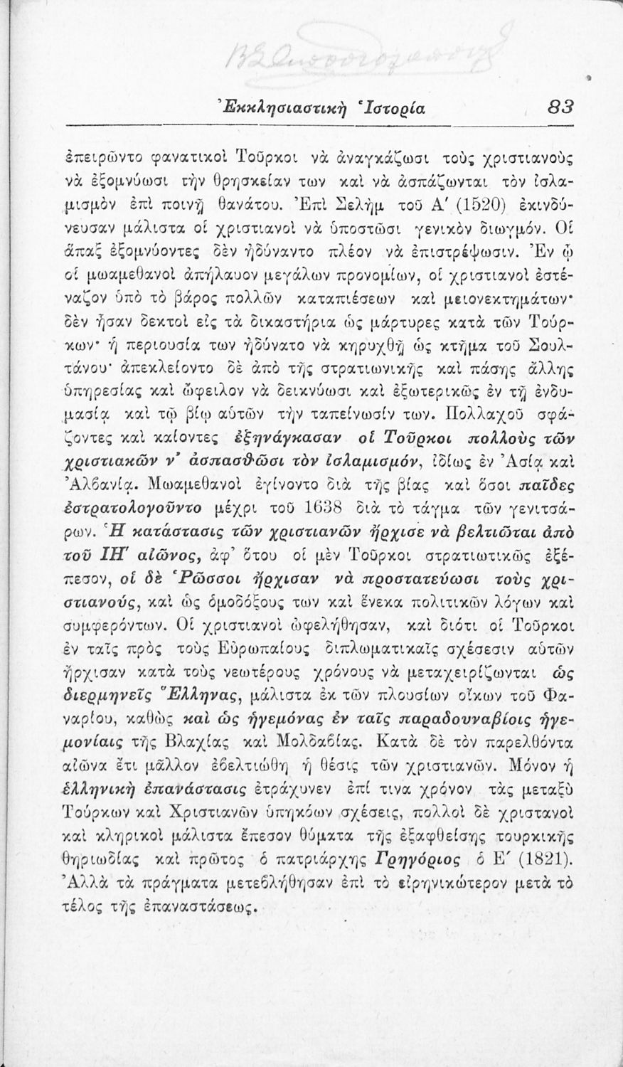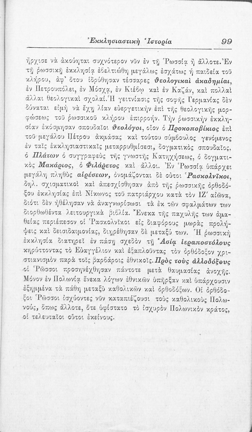 Σχολικό εγχειρίδιο Εκκλησιαστικής Ιστορίας δομημένο ιστορικά με βάση το σχίσμα των εκκλησιών σε ανατολική και δυτική και την άλωση της Κωνσταντινούπολης. Το εγχειρίδιο εγκρίθηκε από την Ιερά Σύνοδο. Ο συγγραφέας ήταν καθηγητής Θεολογίας στο Εθνικό Πανεπιστήμιο.