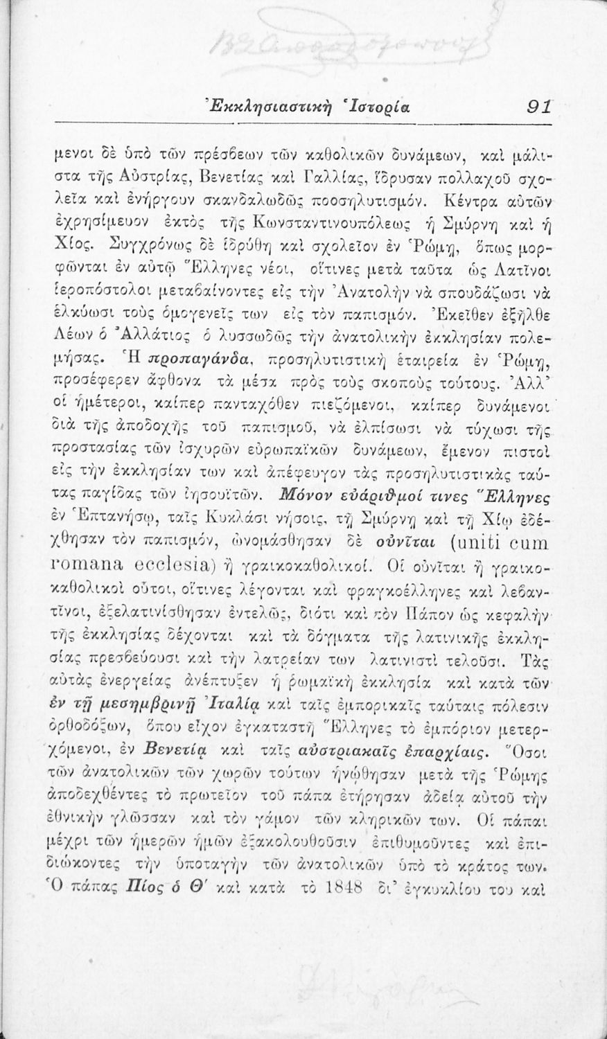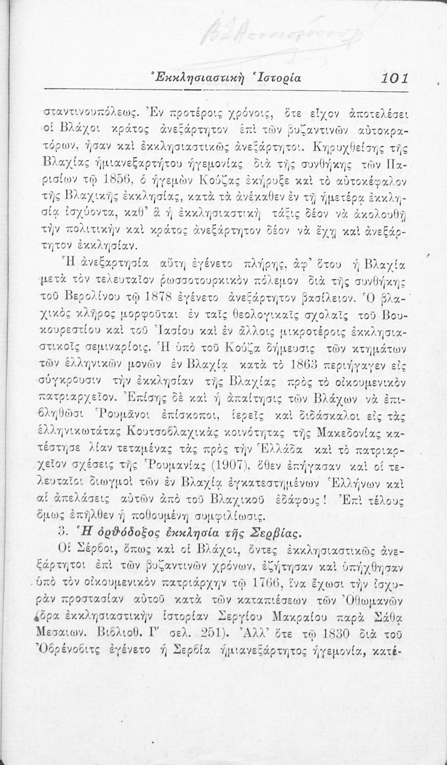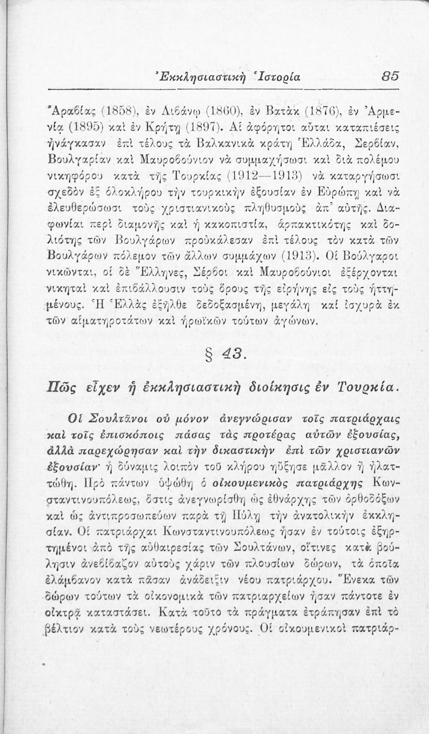Σχολικό εγχειρίδιο Εκκλησιαστικής Ιστορίας δομημένο ιστορικά με βάση το σχίσμα των εκκλησιών σε ανατολική και δυτική και την άλωση της Κωνσταντινούπολης. Το εγχειρίδιο εγκρίθηκε από την Ιερά Σύνοδο. Ο συγγραφέας ήταν καθηγητής Θεολογίας στο Εθνικό Πανεπιστήμιο.