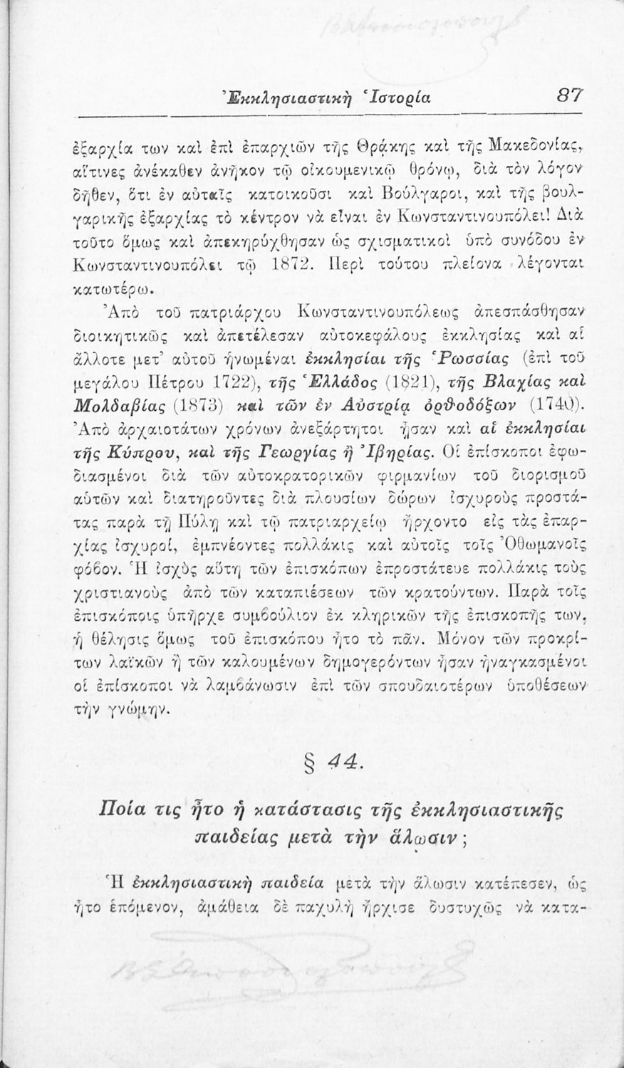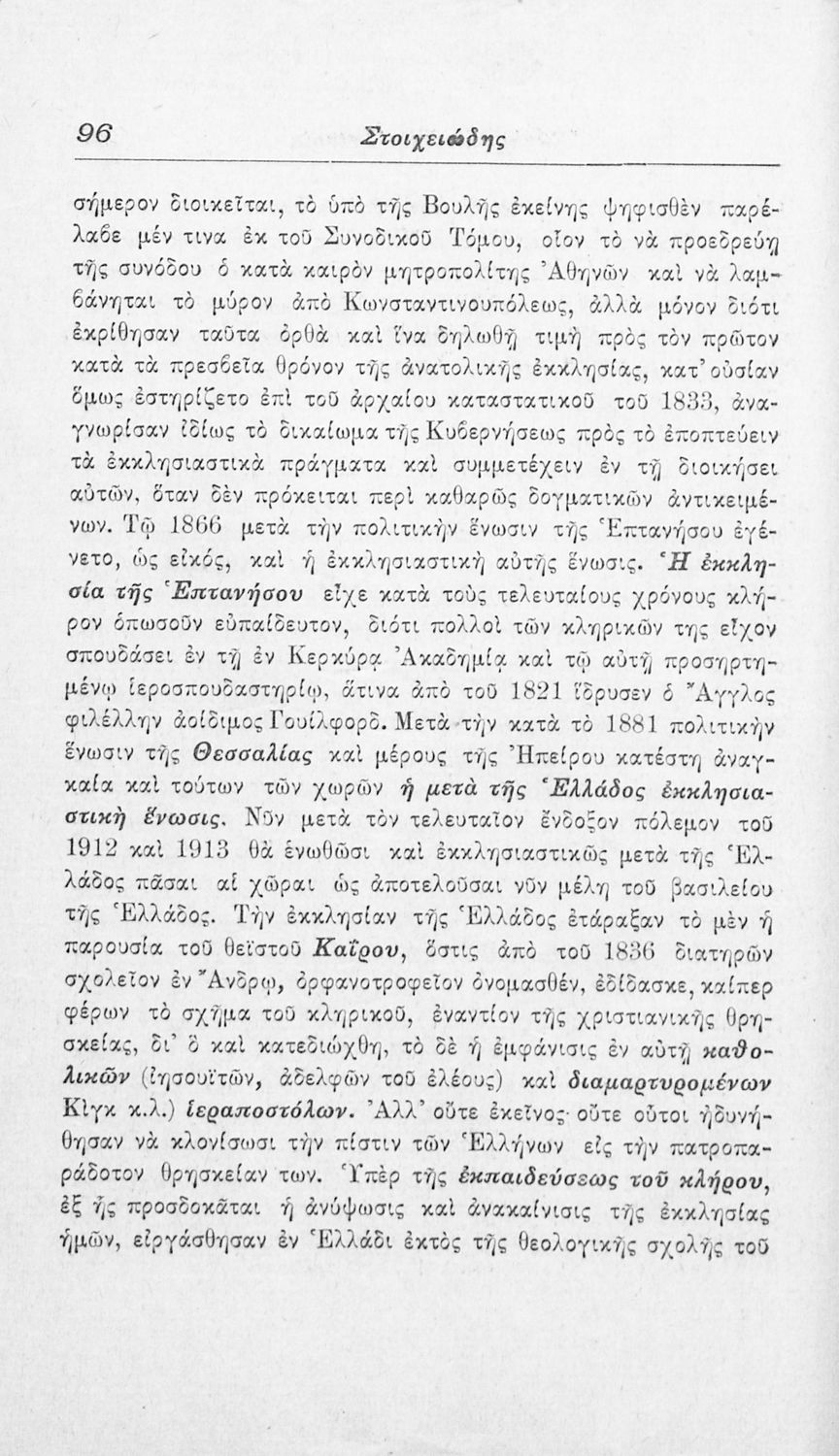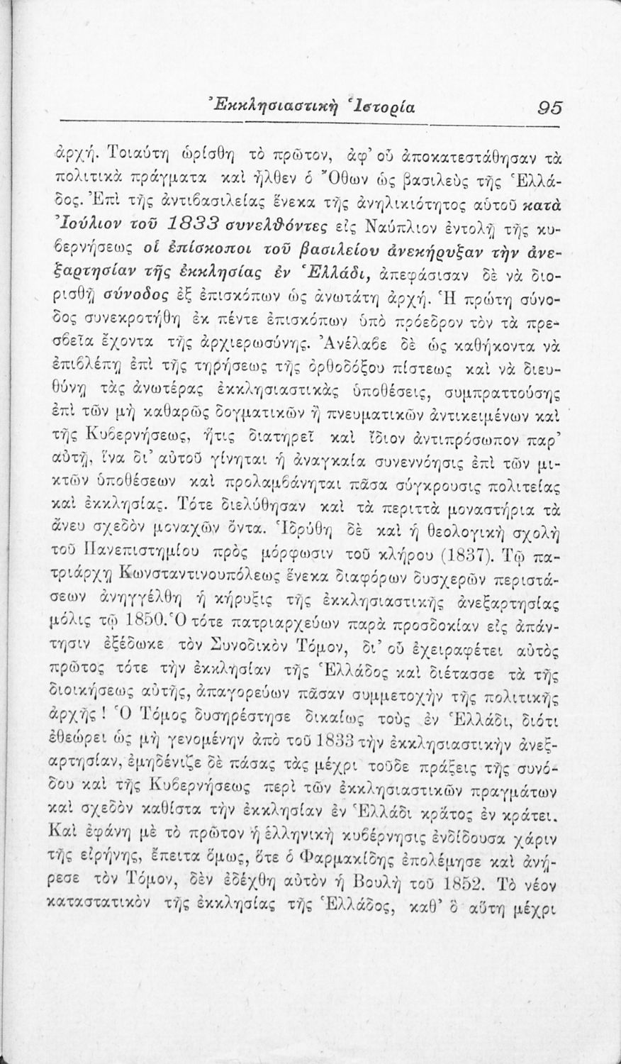 Σχολικό εγχειρίδιο Θρησκευτικών. Περιέχει την ιστορία της Εκκλησίας από την ίδρυσή της μέχρι την δημιουργία της Εκκλησίας της Ελλάδας.