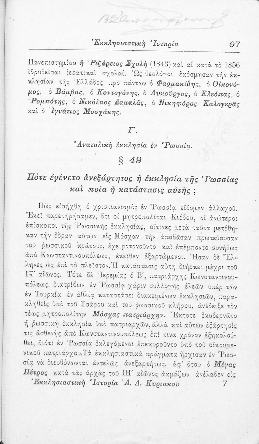Τίτλος: Στοιχειώδης εκκλησιαστική ιστορία προς χρήσιν των Γυμνασίων