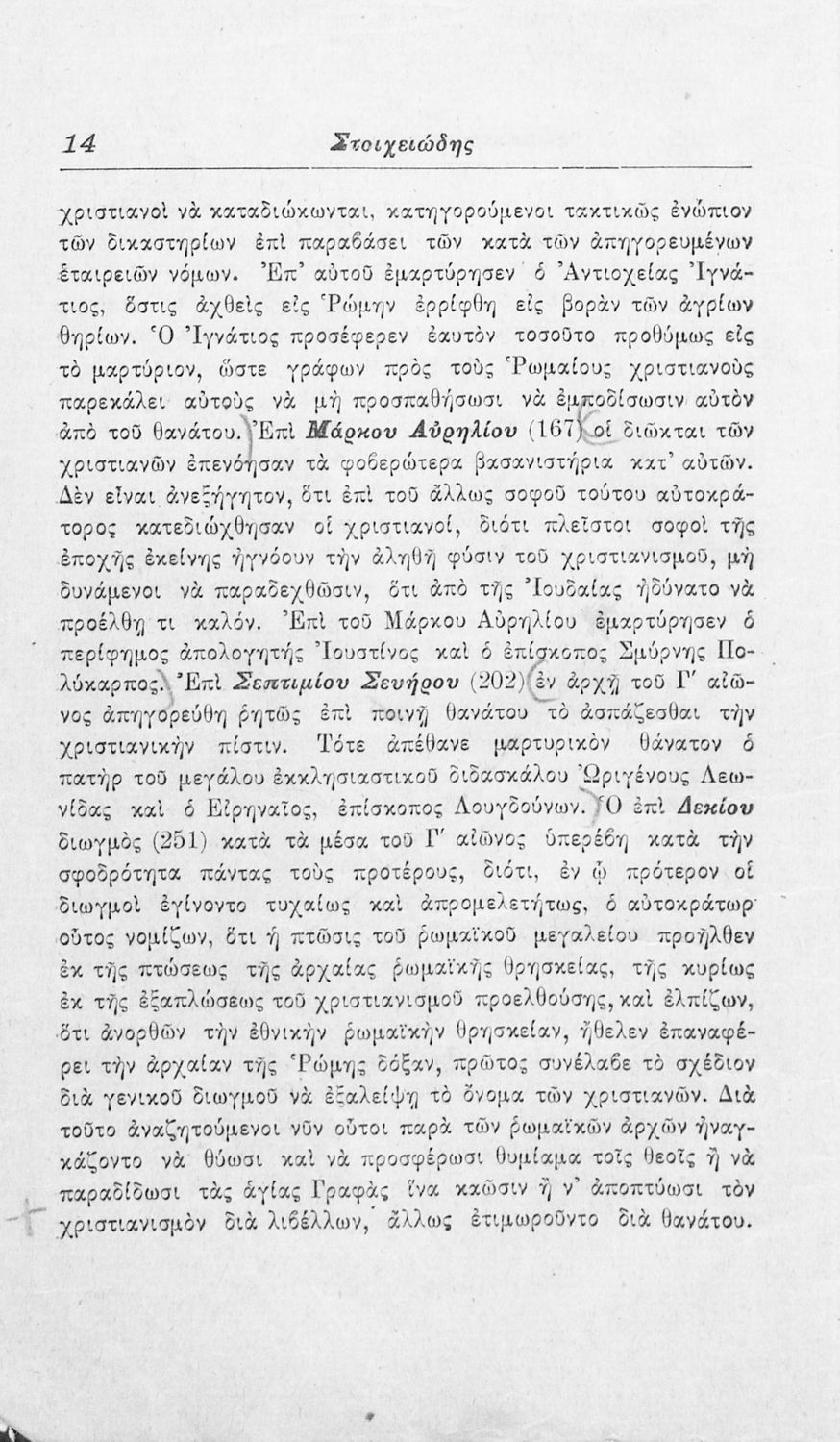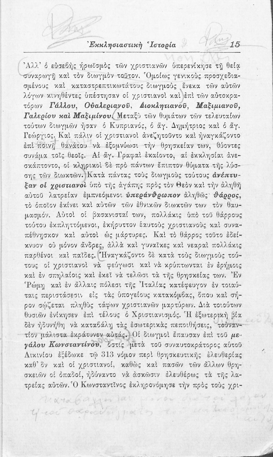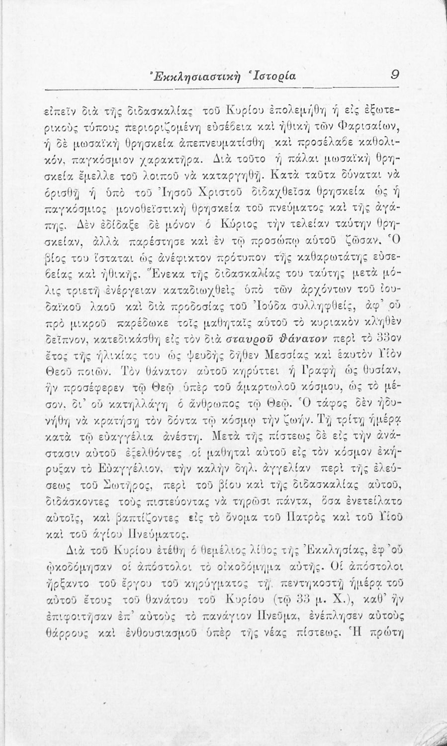 Σχολικό εγχειρίδιο Εκκλησιαστικής Ιστορίας δομημένο ιστορικά με βάση το σχίσμα των εκκλησιών σε ανατολική και δυτική και την άλωση της Κωνσταντινούπολης. Το εγχειρίδιο εγκρίθηκε από την Ιερά Σύνοδο. Ο συγγραφέας ήταν καθηγητής Θεολογίας στο Εθνικό Πανεπιστήμιο.