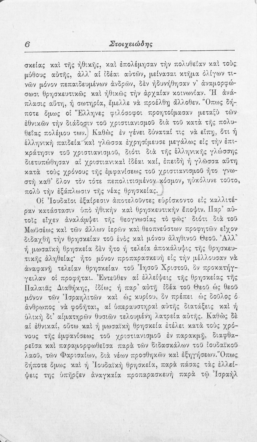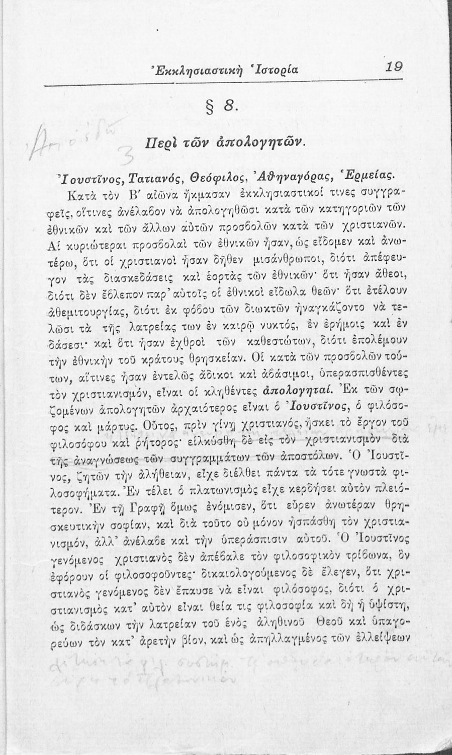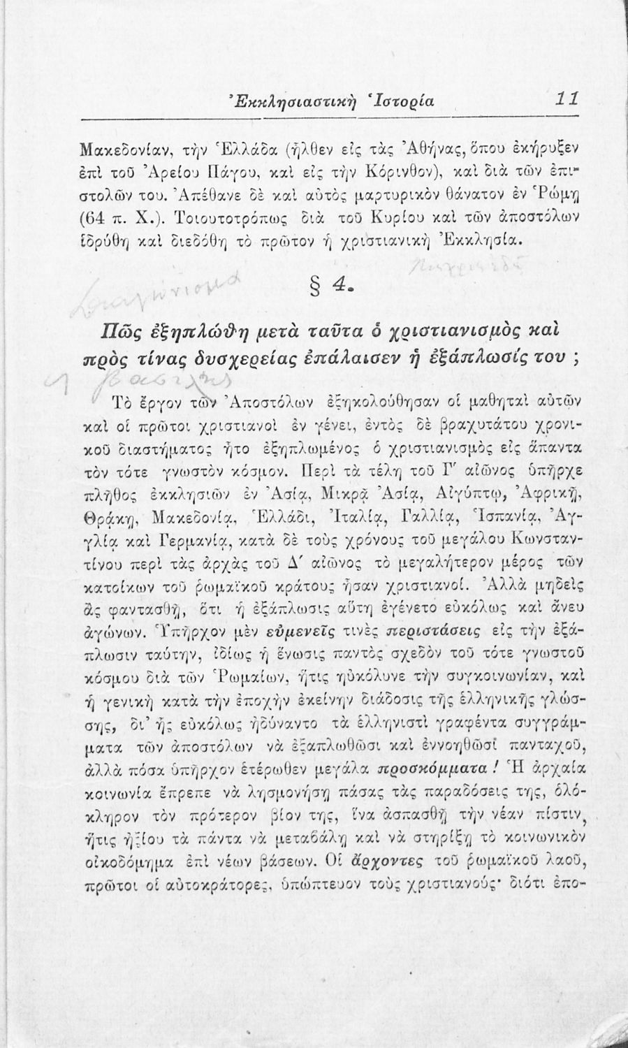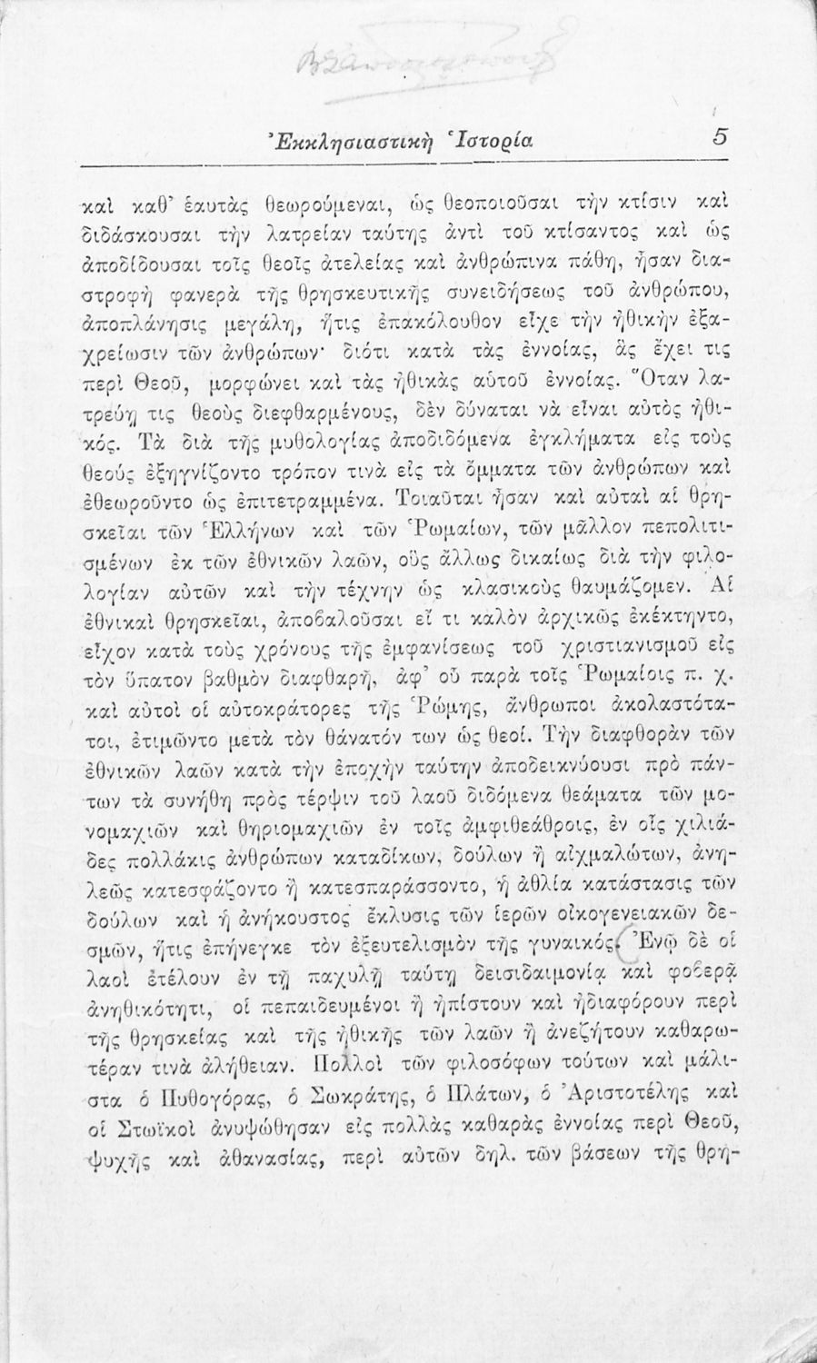 Βαθμίδα εκπαίδευσης: Δευτεροβάθμια Τάξη: Γυμνάσιο Μάθημα: Θρησκευτικά Γλώσσα: Καθαρεύουσα Παρουσίαση περιεχομένου: Σχολικό εγχειρίδιο Εκκλησιαστικής Ιστορίας δομημένο ιστορικά με βάση το σχίσμα των εκκλησιών σε ανατολική και δυτική και την άλωση της Κωνσταντινούπολης. Το εγχειρίδιο εγκρίθηκε από την Ιερά Σύνοδο. Ο συγγραφέας ήταν καθηγητής Θεολογίας στο Εθνικό Πανεπιστήμιο. |