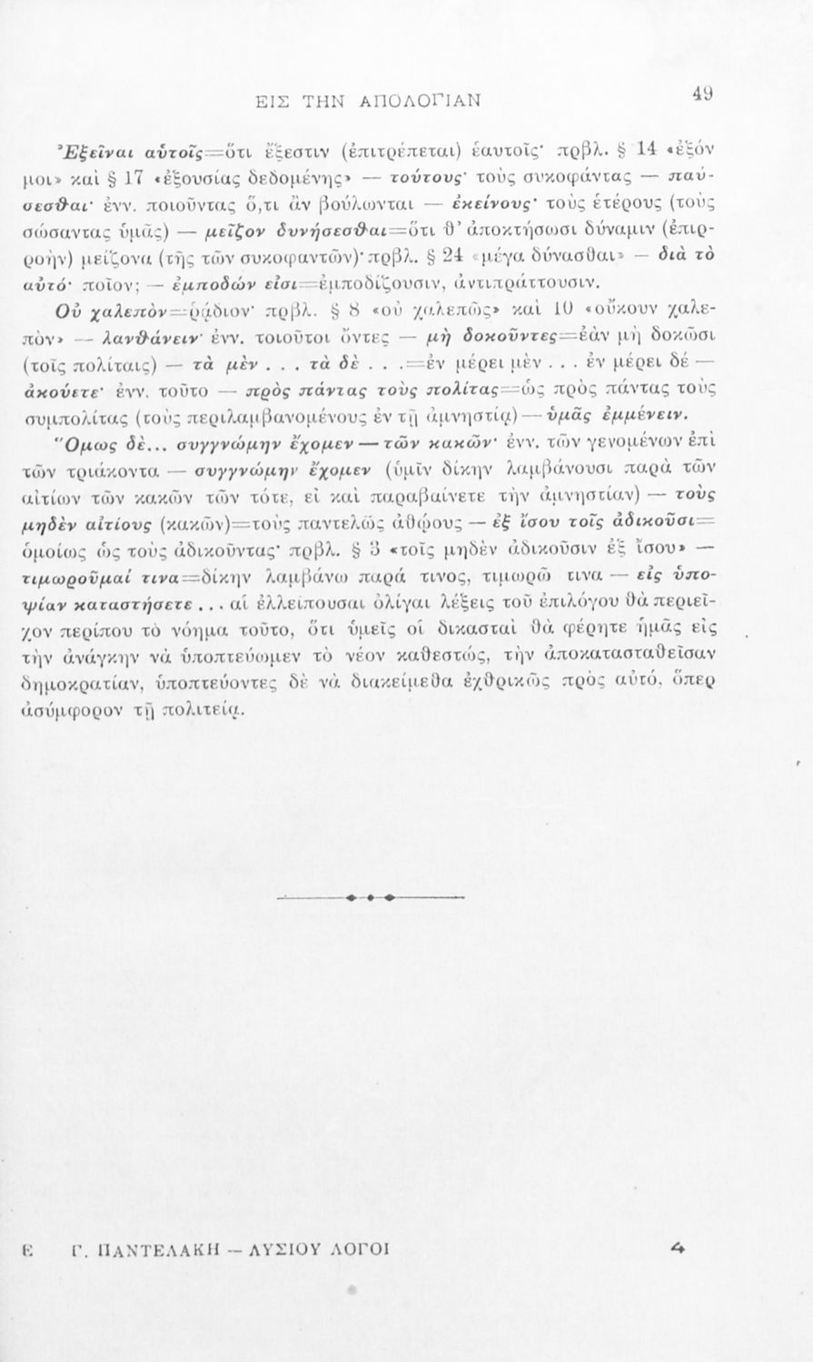 Λυσίας, Εμμανουήλ Γ. Παντελάκης (σχόλια)