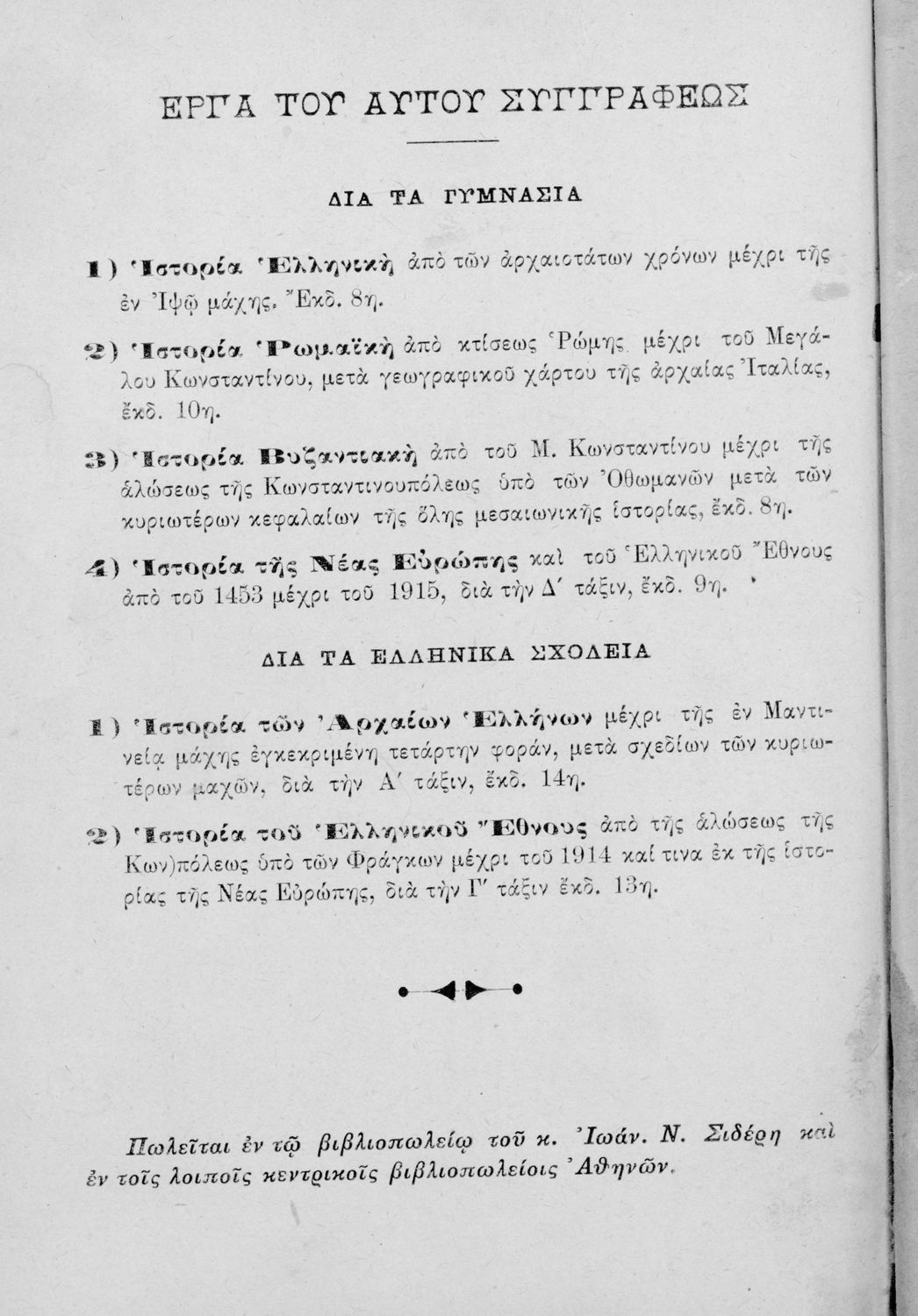 Τίτλος: Ιστορία ελληνική, ρωμαϊκή, βυζαντιακή δια την Β΄ τάξιν των Ελληνικών Σχολείων και ανωτέρων Παρθεναγωγείων