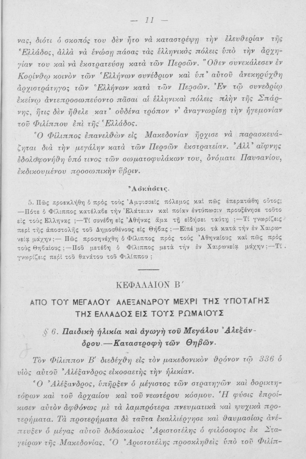 Βαθμίδα εκπαίδευσης: Δευτεροβάθμια Τάξη: Β' Ελληνικού Σχολείου / Παρθεναγωγείο Μάθημα: Ιστορία Γλώσσα: Καθαρεύουσα Παρουσίαση περιεχομένου: Σχολικό εγχειρίδιο Ιστορίας Β' Ελληνικού Σχολείου και Παρθεναγωγείου που καλύπτει την περίοδο από την ίδρυση της Μακεδονικής Ηγεμονίας μέχρι την άλωση της Κωνσταντινούπολης από τους Φράγκους. |