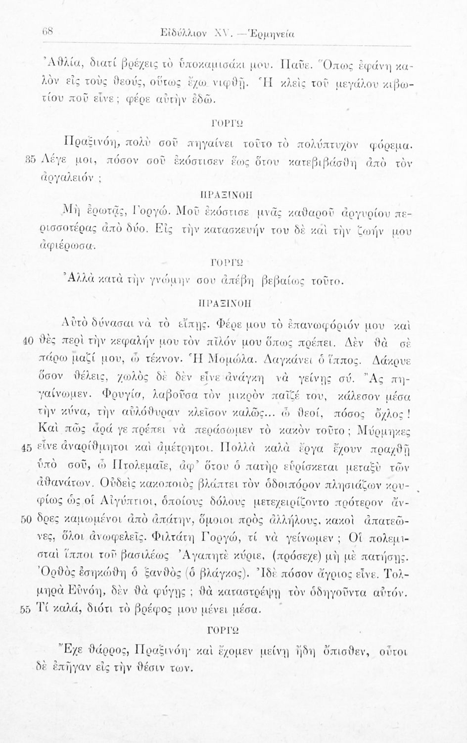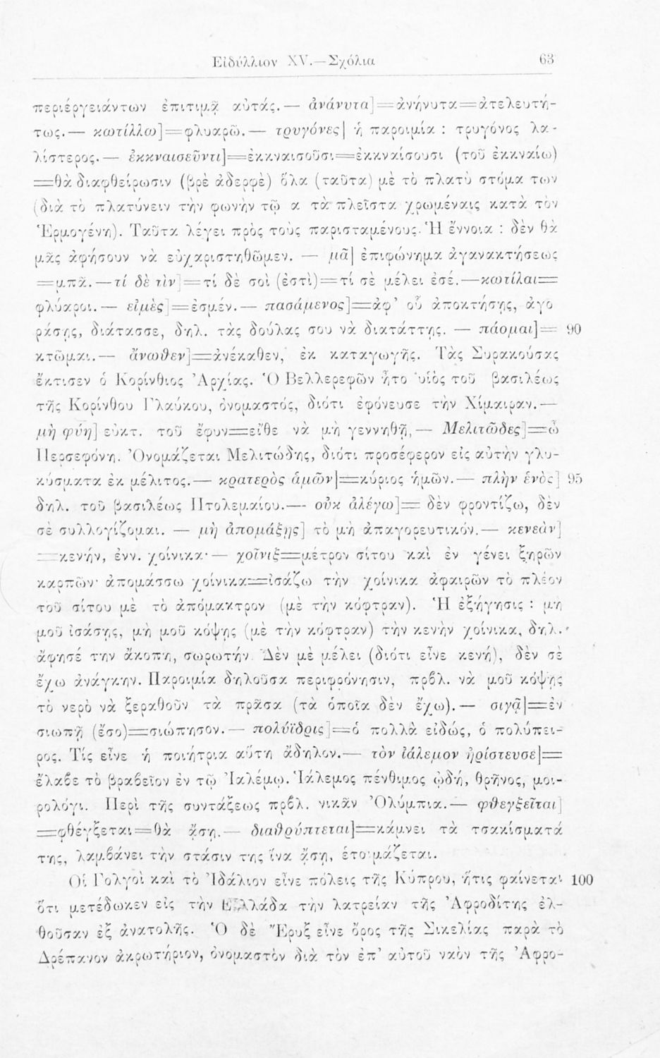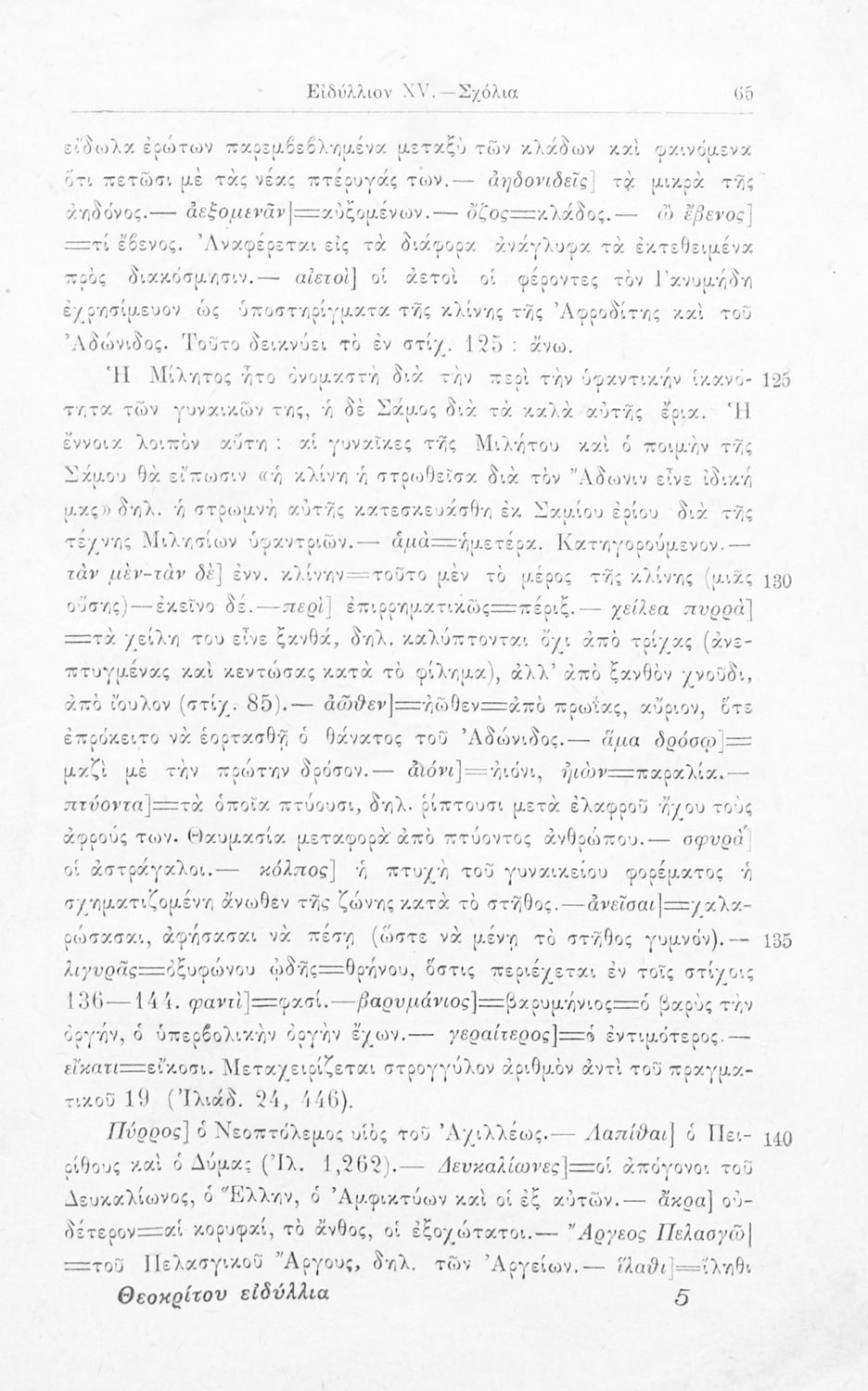 Μαθητικό βοήθημα Αρχαίων Ελληνικών Γυμνασίου που περιλαμβάνει τα Ειδύλλια του Θεόκριτου, εισαγωγή στην βουκολική ποίηση και στη ζωή και το έργο του Θεόκριτου, μετάφραση και ερμηνευτικές και λεξιλογικές παρατηρήσεις.