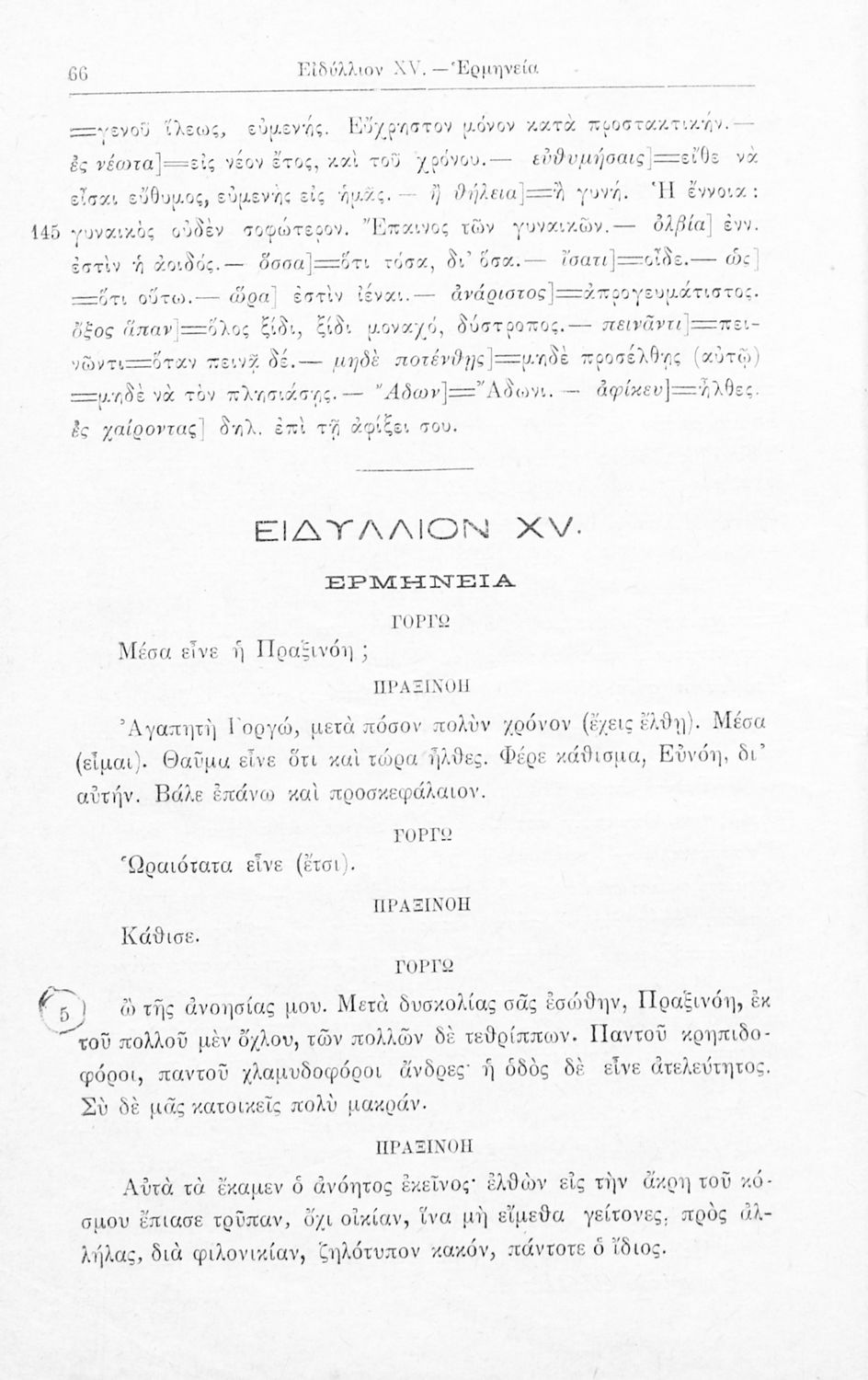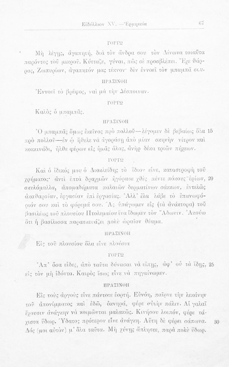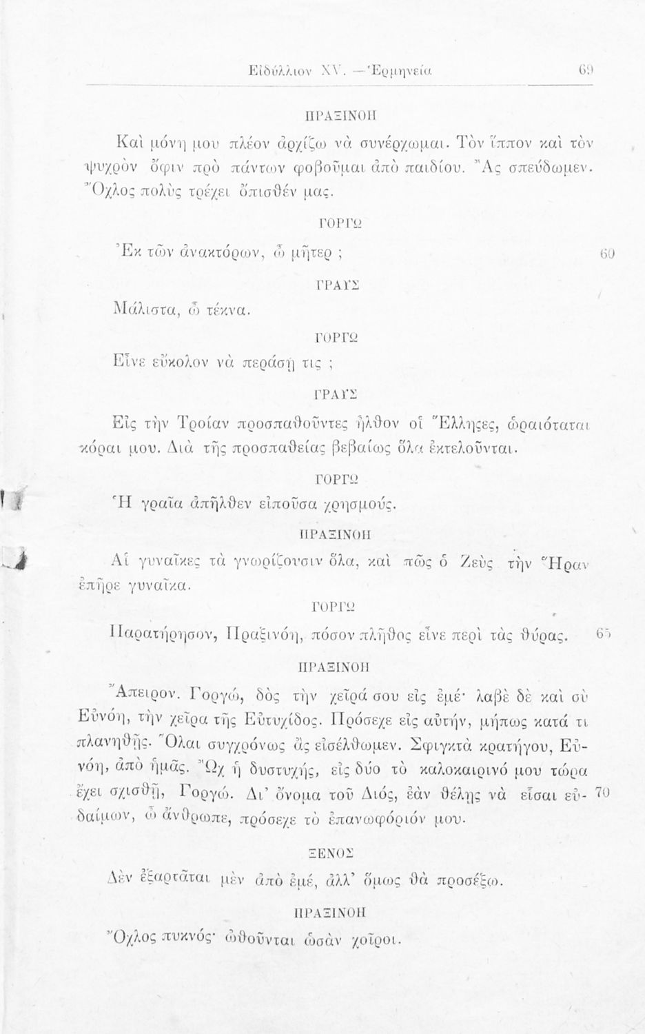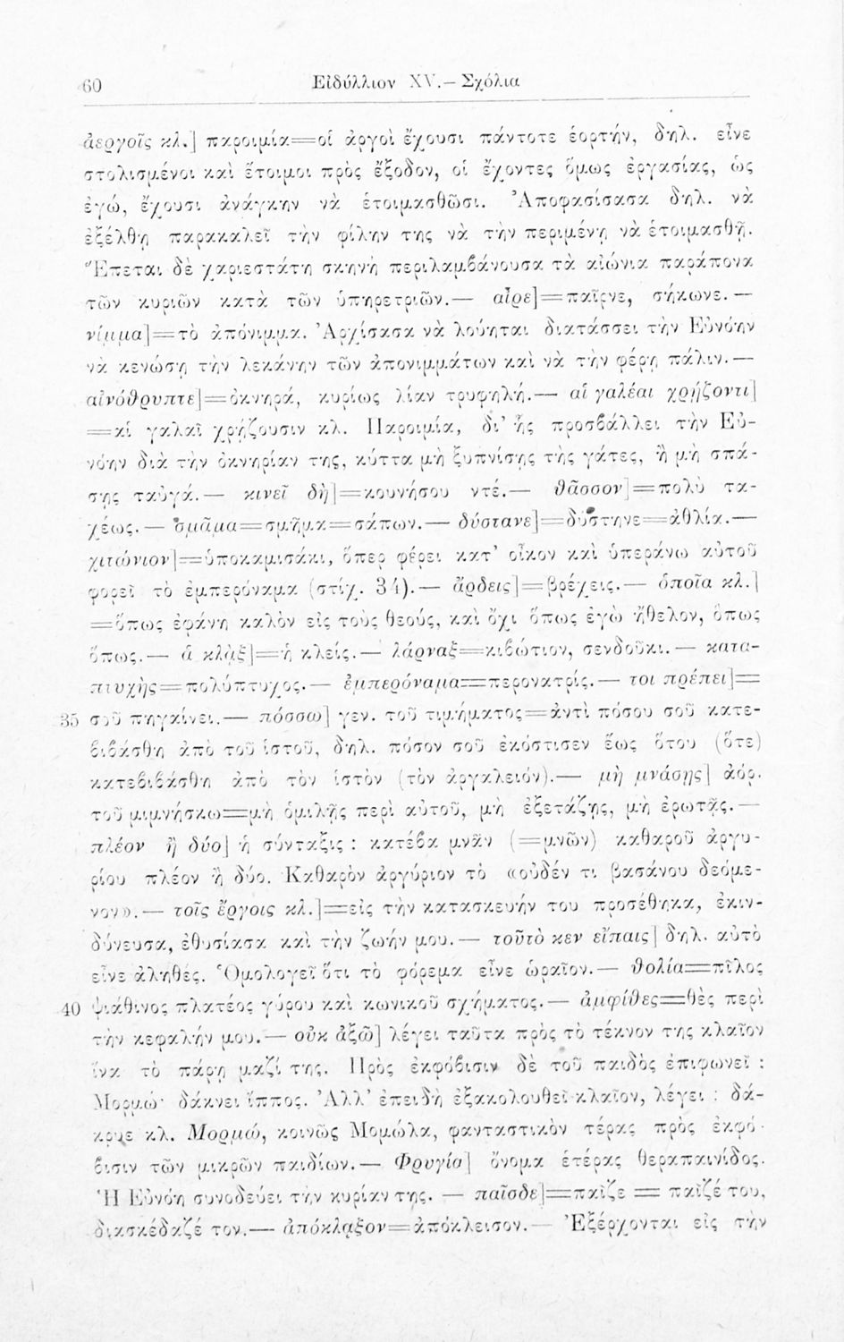 Μαθητικό βοήθημα Αρχαίων Ελληνικών Γυμνασίου που περιλαμβάνει τα Ειδύλλια του Θεόκριτου, εισαγωγή στην βουκολική ποίηση και στη ζωή και το έργο του Θεόκριτου, μετάφραση και ερμηνευτικές και λεξιλογικές παρατηρήσεις.